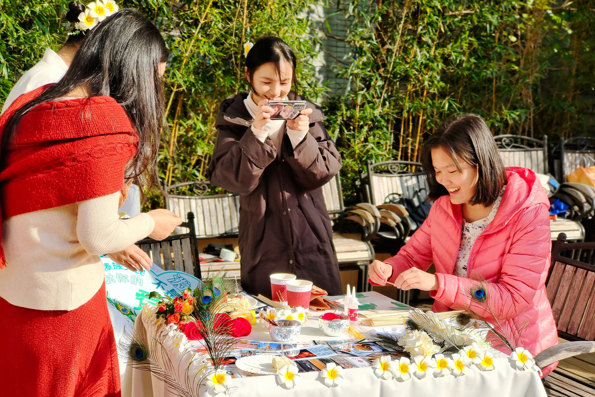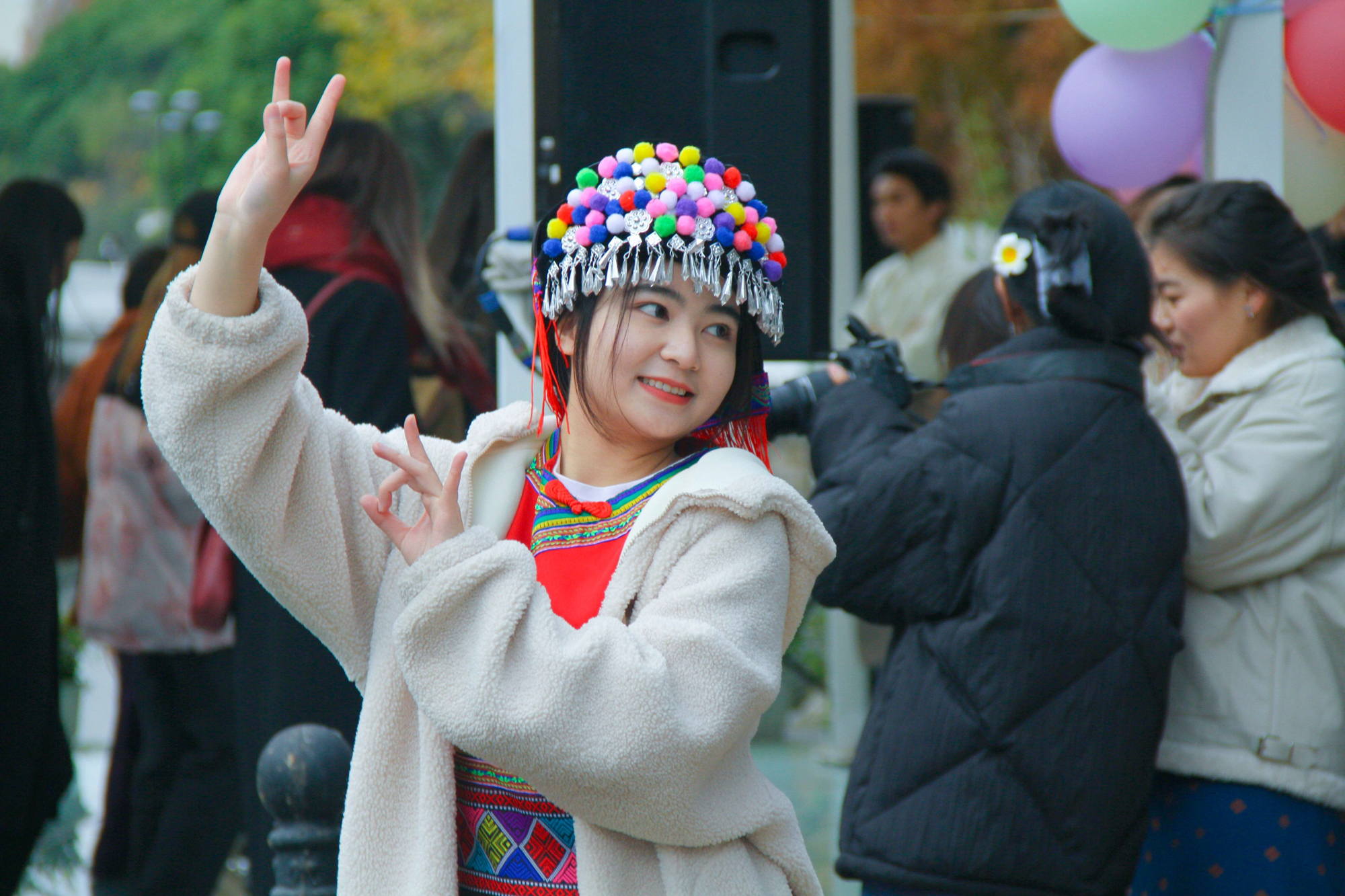 在活动现场,师生们自由游览,在不同民族的展示展台进行服饰体验、集章打卡等活动。面对形形色色精致且富有民族风情的展台和布置,同学们纷纷体验民族服饰,手持民族特色的KT板拍照留念。民族文化交流节在麦西来普大狂欢中落下帷幕。