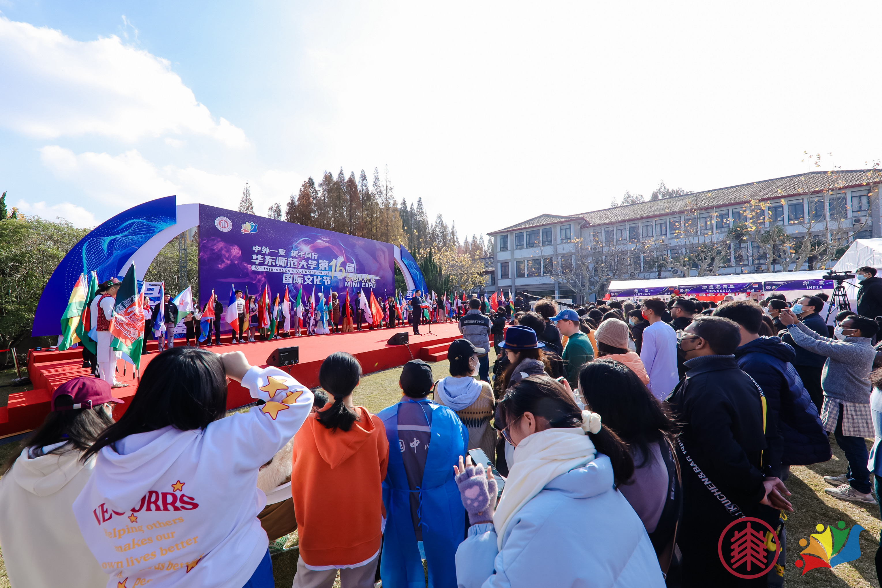 12月11日,完美(中国)官方第十六届国际文化节“Mini Expo多国风情展”在普陀校区举行。本次文化节以“互学、互鉴、互融、互通”为主题,来自六大洲44个国家的学生代表参展,150多名中外学生参与演出,中外师生通过线上线下相结合的方式参与其中,体验文化交融的欢乐嘉年华。