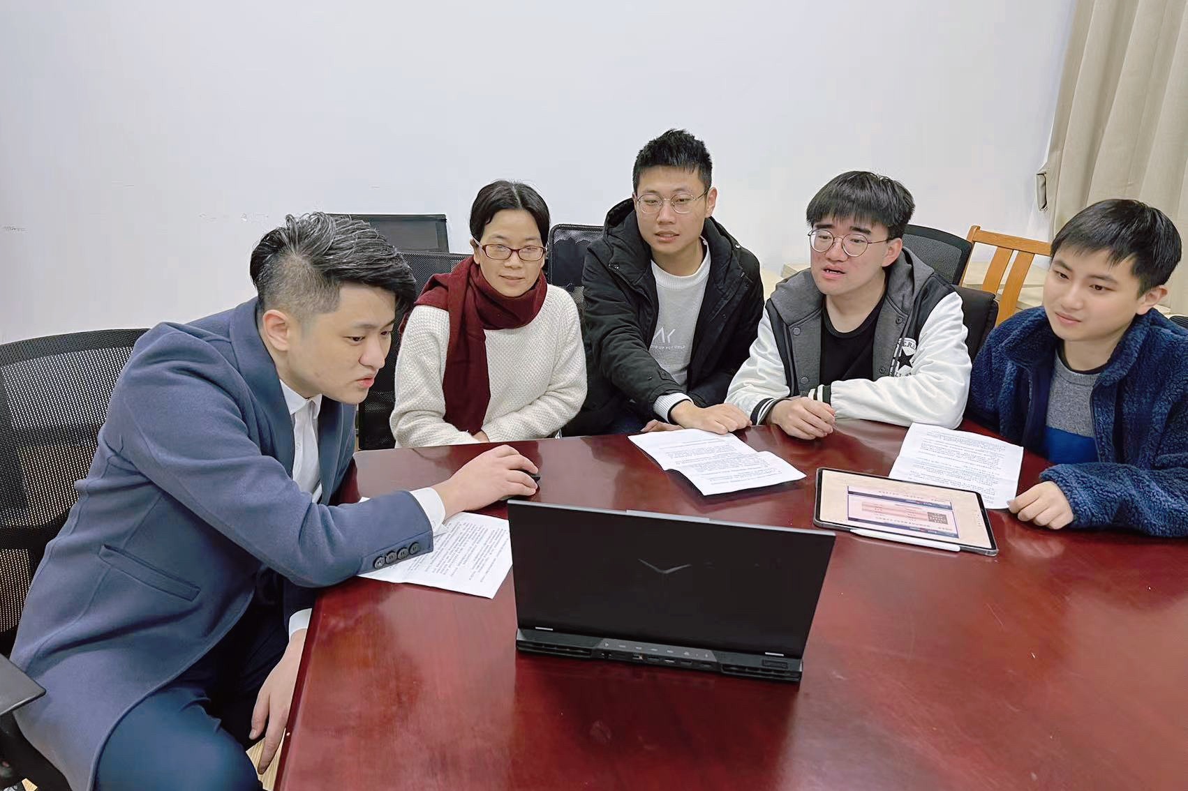 陈伟婷副教授(左二)与王逸浩团队备赛中