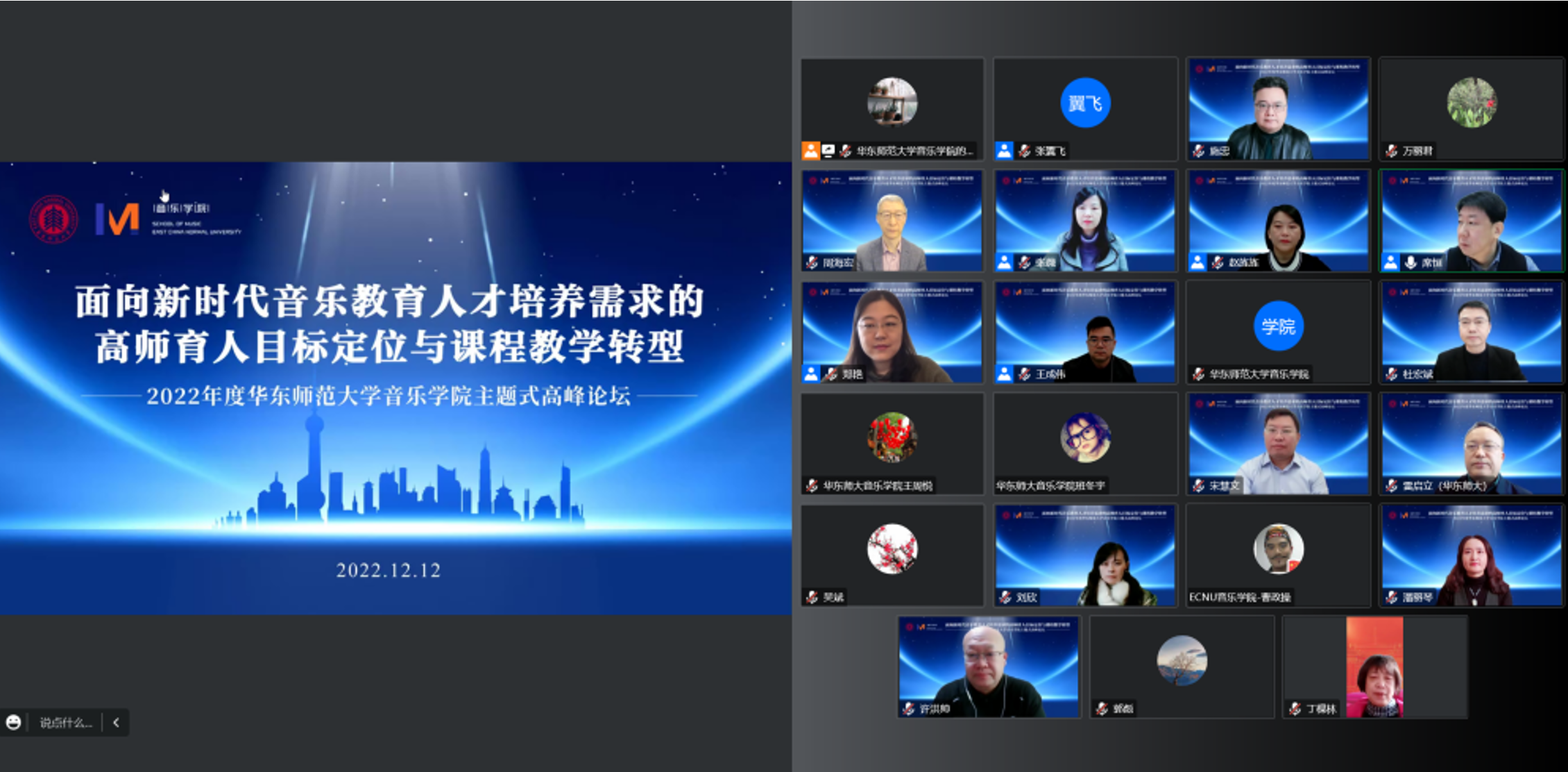 当天,《义务教育艺术课程标准(2022年版)》编制组核心成员,全国音乐教育领域专家,各大音乐学院音乐教育院系、专业负责人,全国各重点师范大学音乐学院领导专家,省市级音乐教育教研员等齐聚线上。