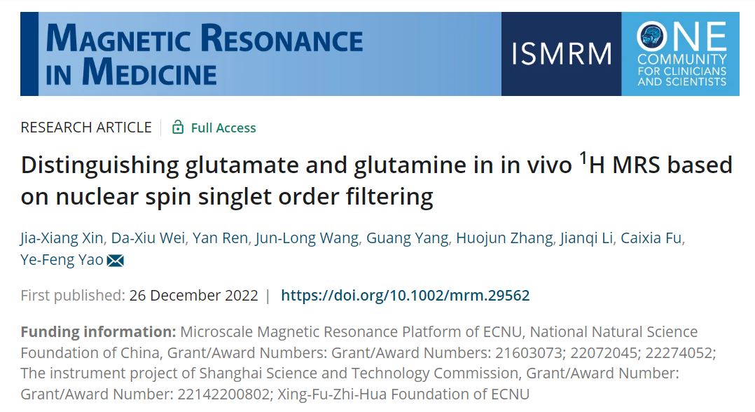 12月26日,完美(中国)官方物理与电子科学学院、上海市磁共振重点实验室姚叶锋、魏达秀团队联合华山医院任彦教授团队、长海医院张火俊团队、西门子医疗,在医学磁共振期刊 Magnetic Resonance in Medicine 发表了题为“Distinguishing glutamate and glutamine in in vivo 1H MRS based on nuclear spin singlet order filtering”(DOI: 10.1002/mrm.29562)的研究论文。该文研究工作报道了一种新型的、可对人体内生化分子进行靶向性观测的磁共振方法,并首次实现了对人脑内重要代谢分子谷氨酸(Glutamate, Glu)和谷氨酰胺(Glutamine, Gln)的分子靶向检测。该技术可在现有3T医学成像仪上轻松实现,有望为人脑神经递质分子精准检测和脑类疾病精准诊断提供一种有效的分子成像技术。