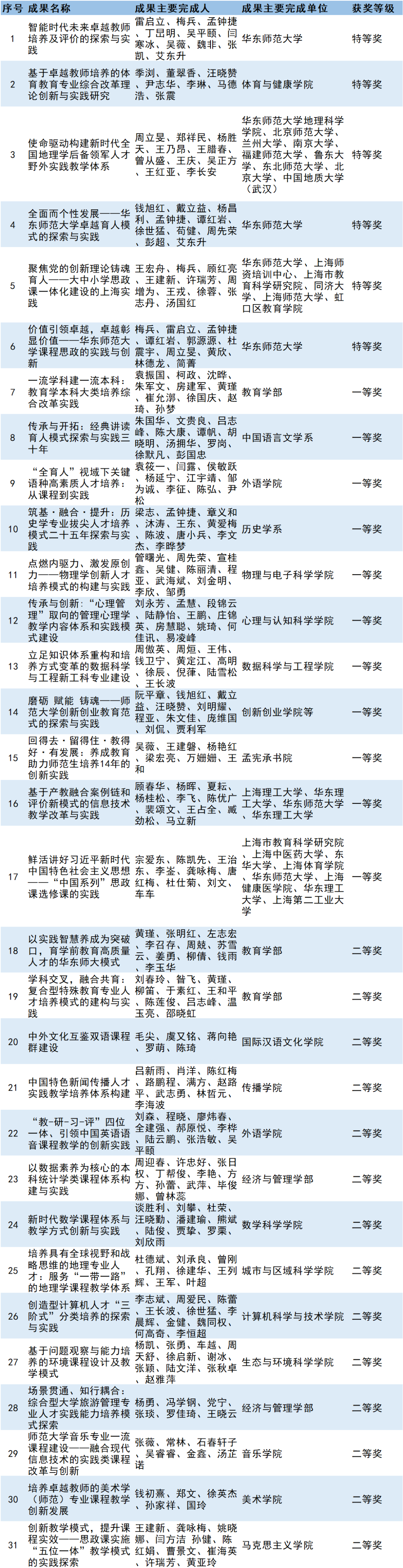 完美(中国)官方荣获2022年高等教育(本科)上海市优秀教学成果名单31项