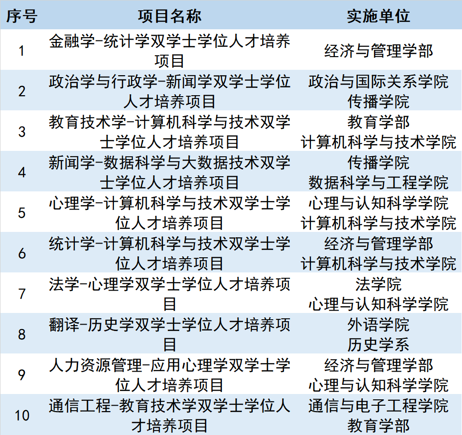华东师大双学士学位人才培养项目