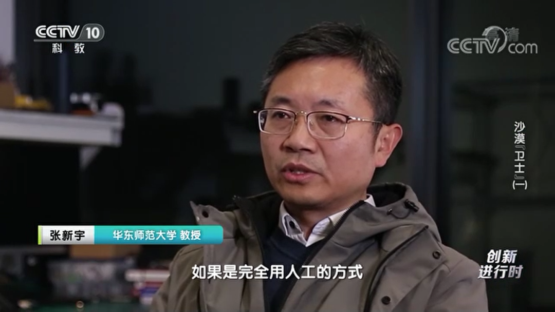 CCTV-10《创新进行时》栏目两集连播《沙漠“卫士”》专题纪录片,记录张新宇团队研发的植树挖坑机器人全过程。