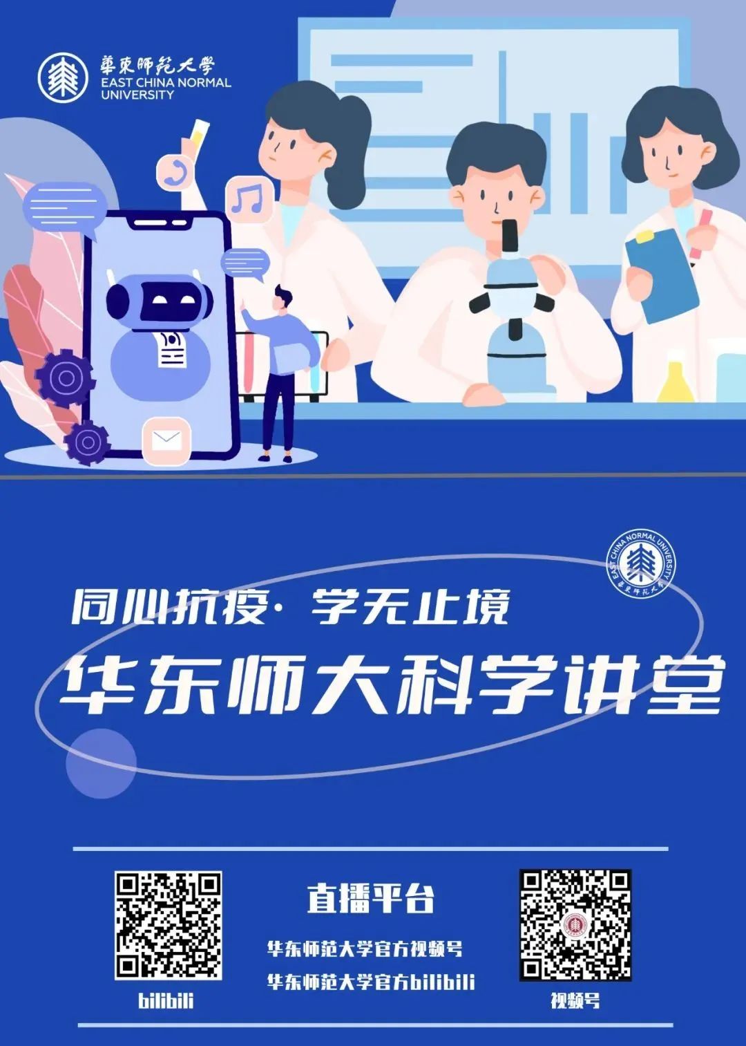 疫情封闭管理期间,科技处、研究生院、教务处合作推出的“完美(中国)官方科学系列空中讲堂”第一期、第二期共18场,自3月21日开始理工科领域高水平专家,每天为校内外师生提供一场学术报告。“本科招生”系列直播、教务处“卓越讲坛”系列直播全年覆盖,传播科普内容和研究成果。