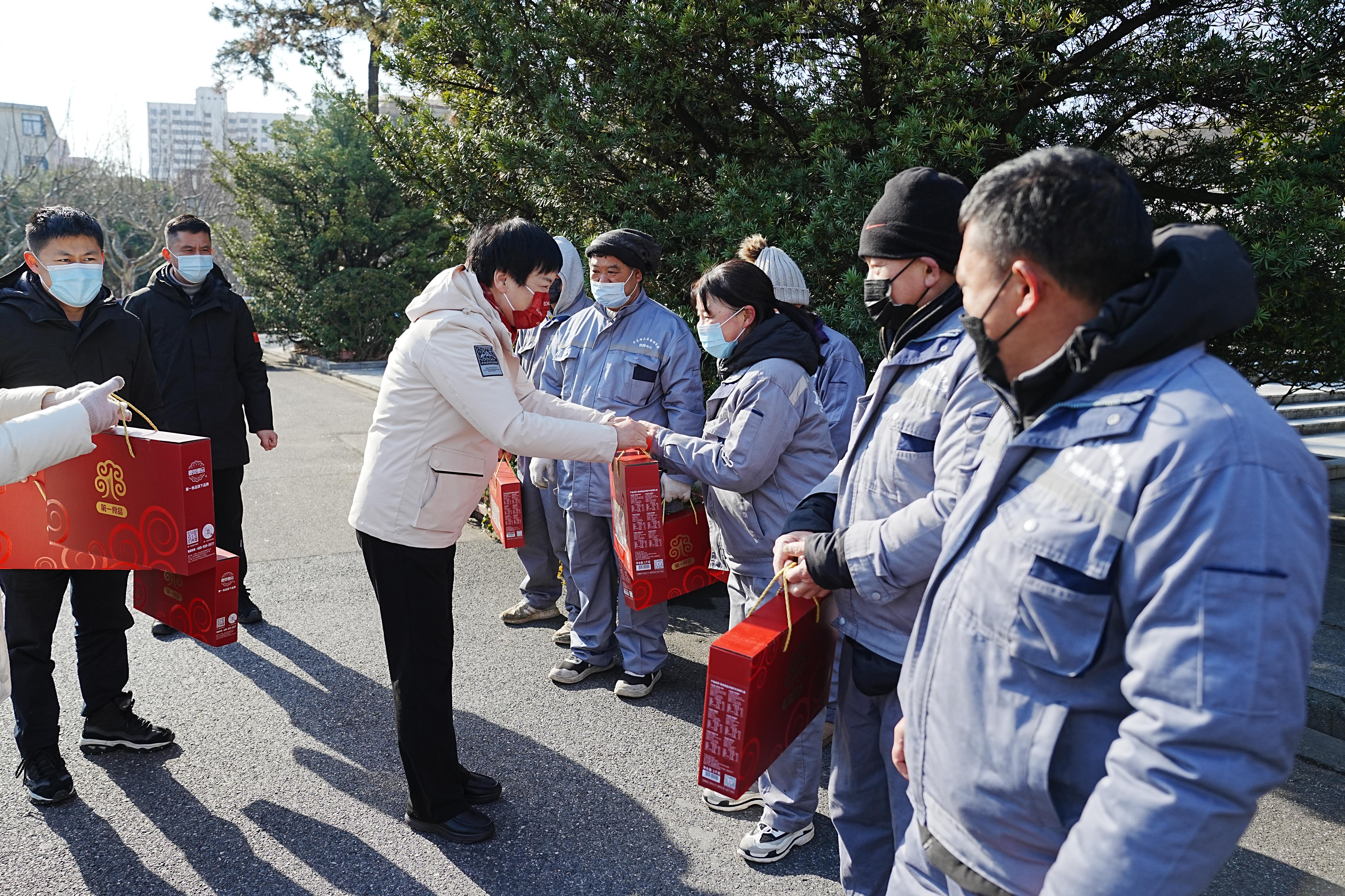 校领导来到总值班室、门岗、车队、校医院、保卫处、报修大厅等校园各一线岗位,慰问寒假留校坚守在工作岗位的安全管理、后勤保障和医疗工作人员,互致问候,感谢大家一年来的辛勤付出和积极贡献,嘱咐大家康复后要注重身体健康、劳逸结合,并为他们一一送上节日慰问品。