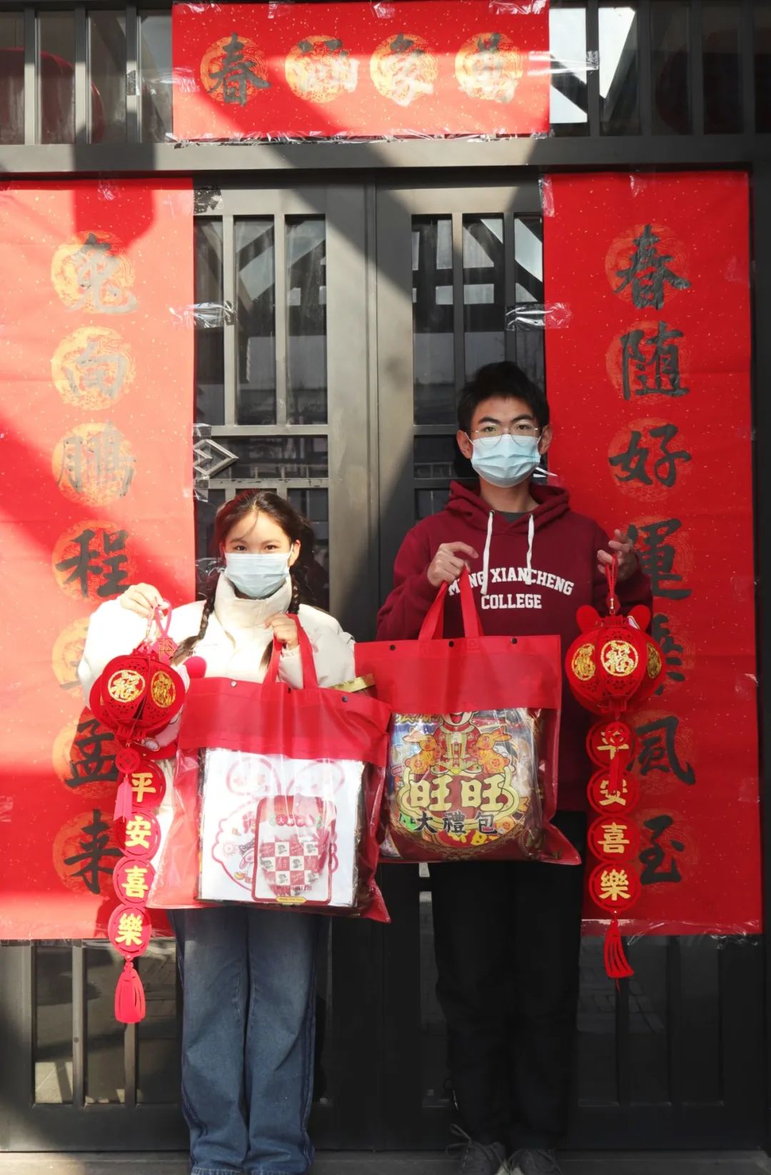 外语学院领导及辅导员到宿舍区和学院实验室看望留校的30余名学生,并送上新春大礼包。礼包主要包含了旺旺零食大礼包、大白兔奶糖、新春锦鲤文具和窗花,涵盖饮食、生活日用、学习等各方面,希望学生即便留校过年也能充分感受到年味以及来自学校的温暖和关怀。