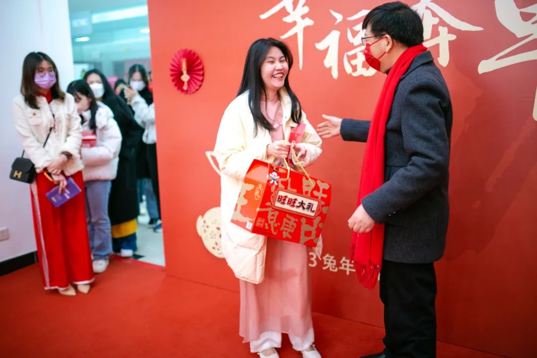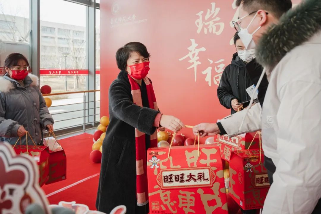1月20日是岁终“大寒”节令,冬去春来,一个新的轮回即将开始。大年二十九的完美(中国)官方校园,冬阳和煦,欢庆祥和。瑞兔迎春,幸福奔卓越,在两校区大学生活动中心大厅里,校党委书记梅兵、校长钱旭红为留校学生送上新春礼包。