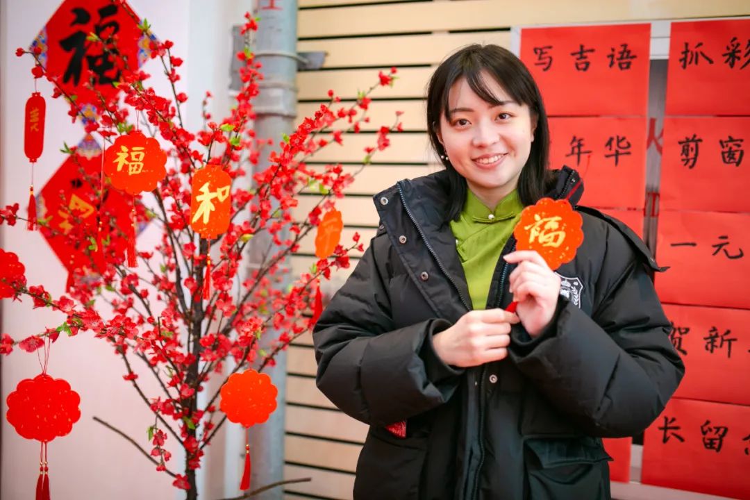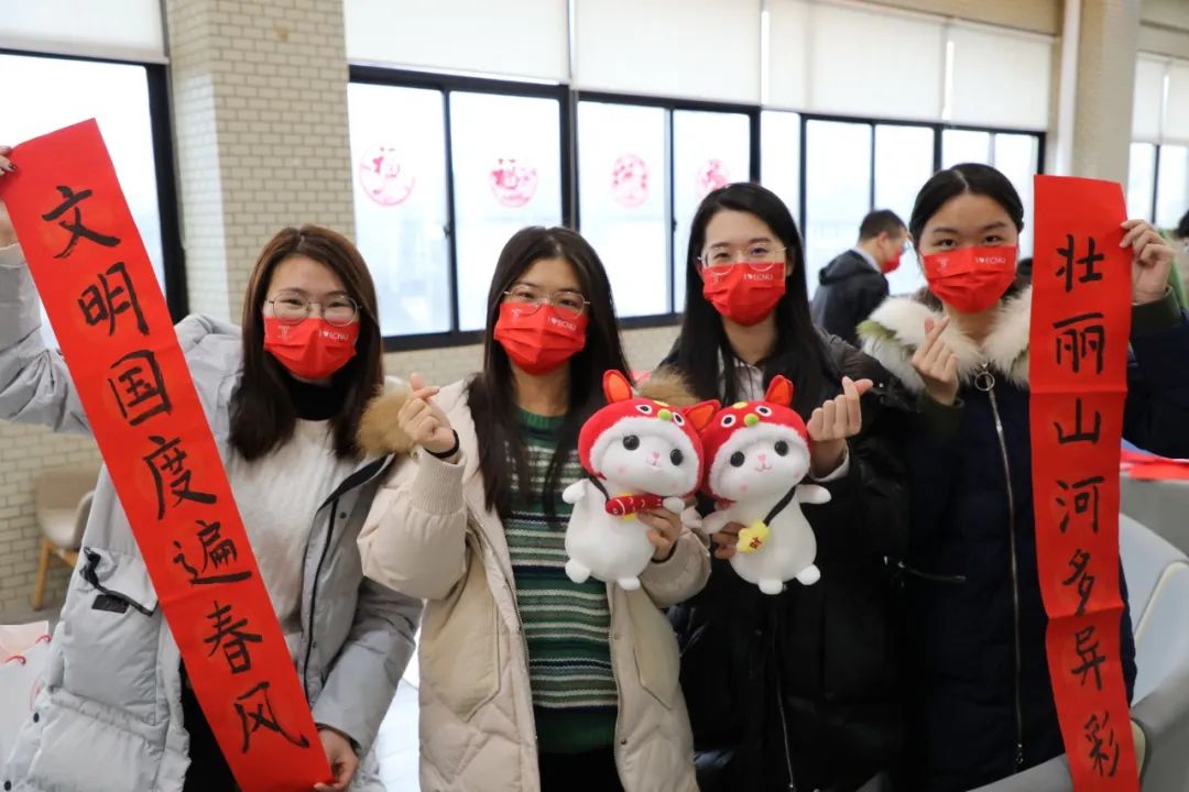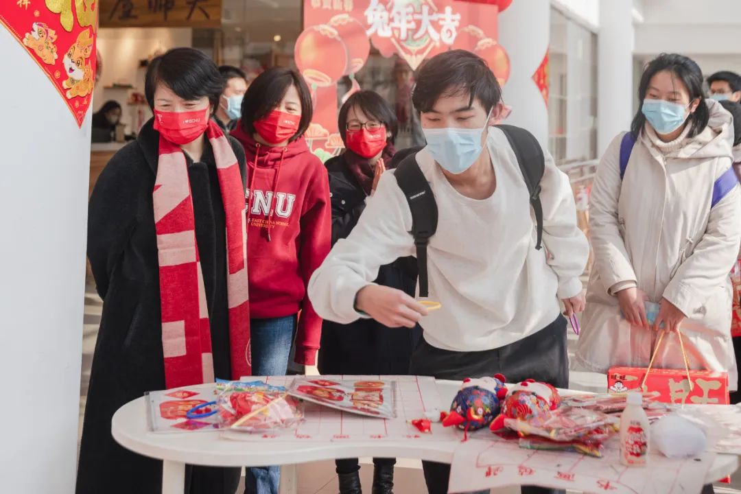 学校相关职能部门,协同各学部院系组织温馨多彩的年味活动。在现场,亲手书写喜庆的福字树挂,猜灯谜、做兔灯、剪窗花,迎接新春,互送祝福。