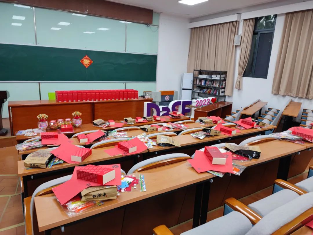 在数据科学与工程学院“忆童趣、品年味” 2023温暖新春活动中,学院领导老师们与留校同学们欢聚一堂,贴春联,剪窗花,做灯笼。学院精心准备了神秘童年零食惊喜,师生一起体验温暖的童趣和浓浓的年味,红红火火喜迎兔年春节!