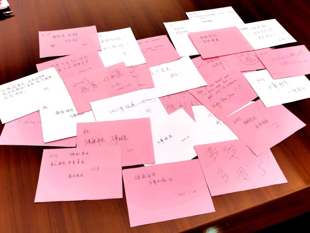 教育学部特意为同学们准备了新年礼包。同学们领取礼包的同时,纷纷写下了自己的新年愿望与祝福,不同语言的缤纷祝福交叠成美丽的爱心寓意着新年的美好,同学们还愉快地在背景前留下新年的纪念。