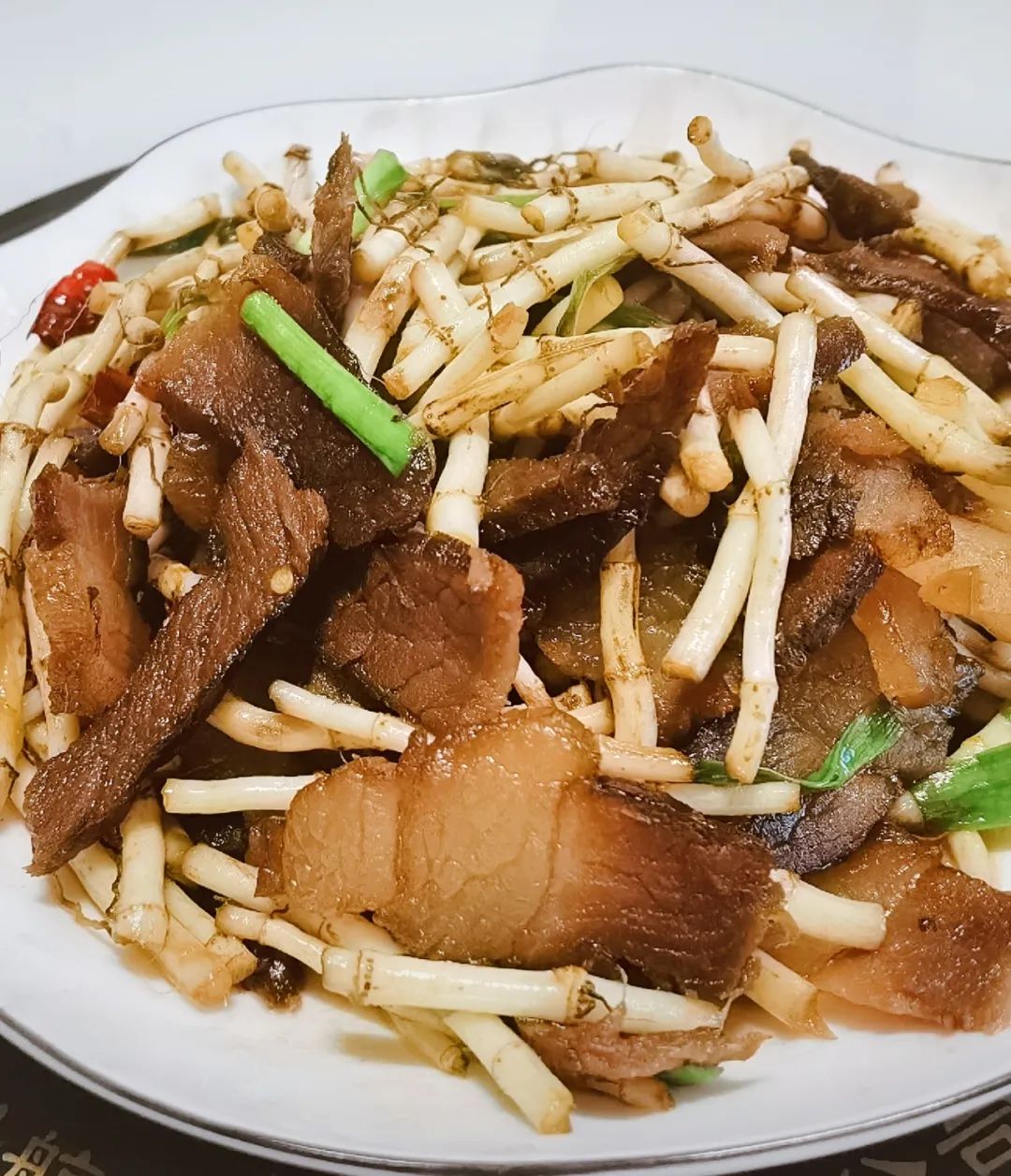 吴诚薇@贵州贵阳:过年那必定会吃折耳根炒腊肉,这也是贵州的地方特色菜。