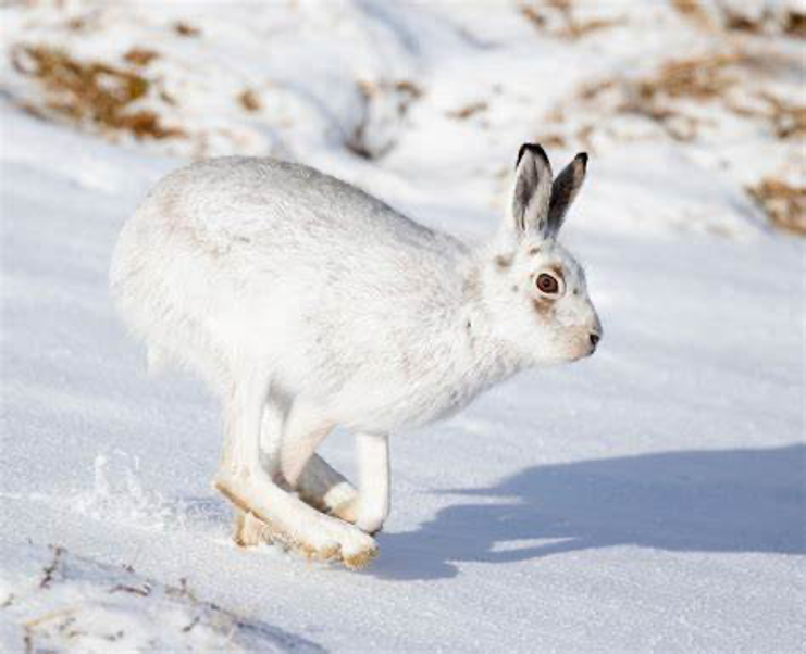 在兔子家族中,除了基本配色棕色系外,也有一些兔子毛色鲜明,例如在我国新疆和黑龙江的两个省区的最北端有分布的雪兔(Lepus timidus)Mountain Hare。夏季的毛色普普通通,但到了冬季,除了耳朵尖,其他全变成了白色,这当是为了适应雪地逐渐演化而来。