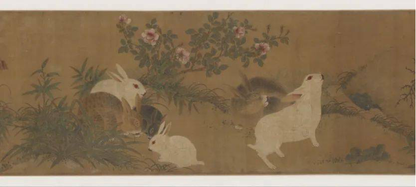 元代画家钱选创作的《玉兔小鸟图卷》,其中就包括红眼睛的小白兔
