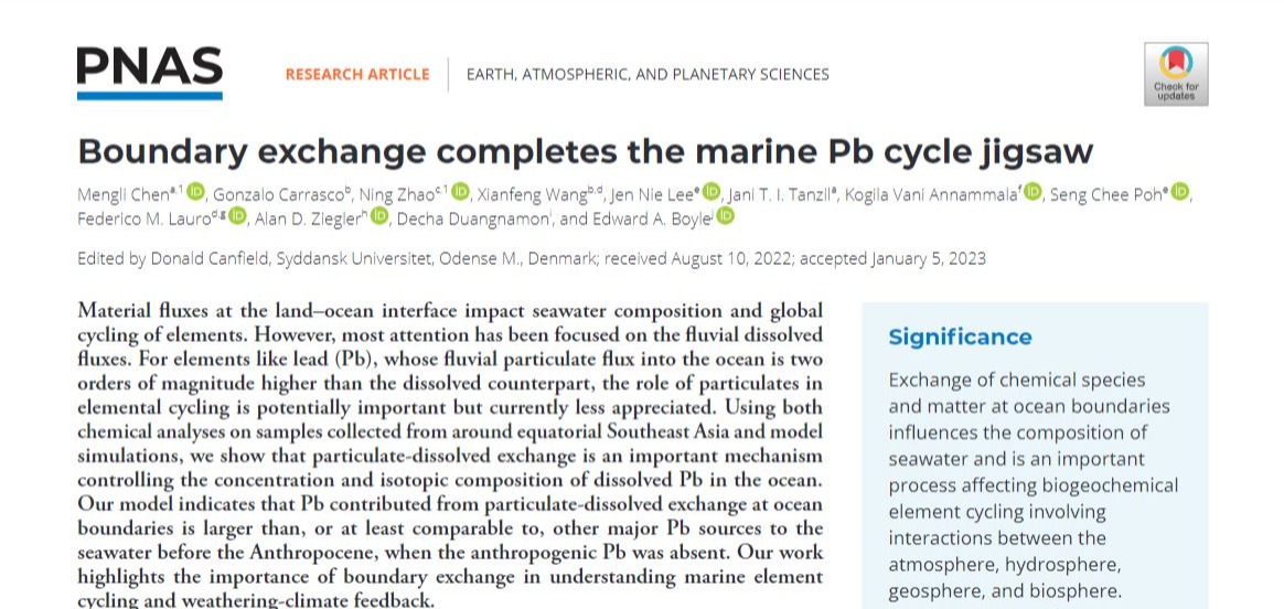 论文链接:Boundary exchange completes the marine Pb cycle jigsaw