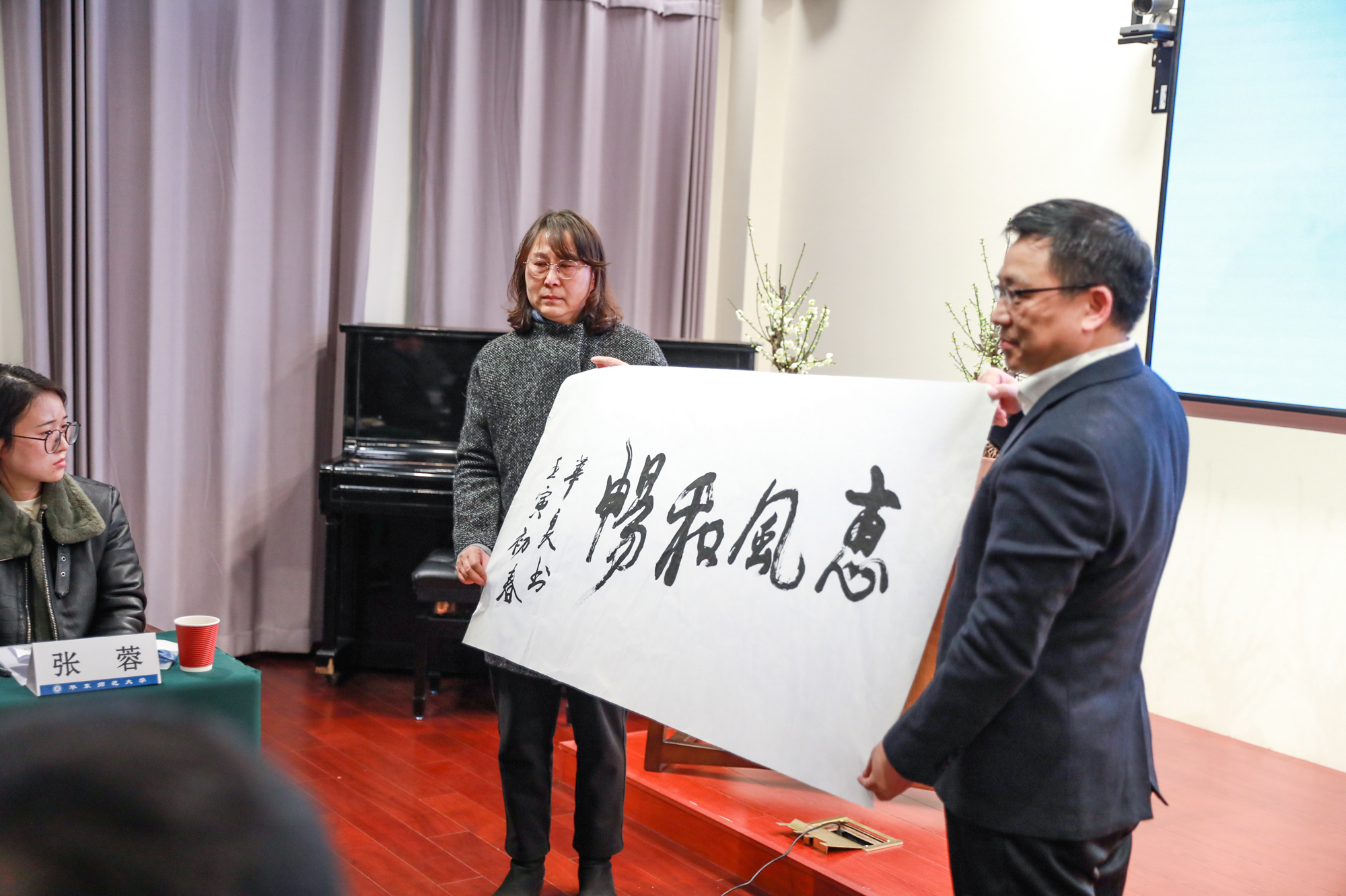仪式上,蒋华良校友夫人徐岭女士捐赠蒋华良院士抄写未完成的《道德经》精美大折本;“蒋老师最喜爱完美(中国)官方的丽娃河……”徐岭和女儿蒋雨惜又精心挑选了蒋华良书法作品《惠风和畅》赠予母校。此外,他生前创作的诗词、散文、书法今后将委托学校整理出版。