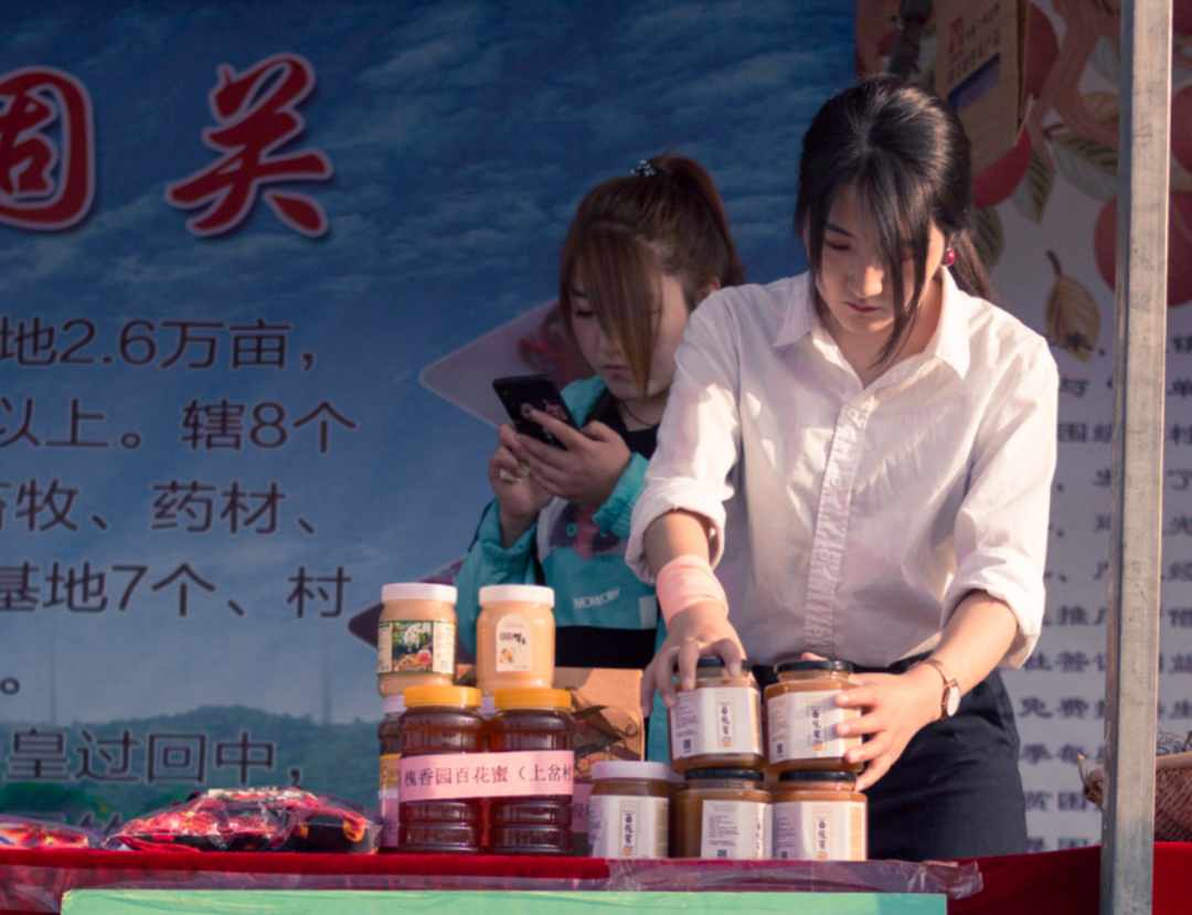 在驻村第一书记的支持下,姜晓玉的自媒体创业得到了当地政府部门的肯定。系统了解当地的扶贫政策后,姜晓玉借助农产品绿色通道完成了产品质量检测,并与合作社、其他蜂农签订三方协议,确保蜂蜜的供应链。在产品的销售方面,姜晓玉和团队深挖产品品牌故事,打造产品的文创包装,并在上海高校、社区和多个线上渠道进行推介、销售。