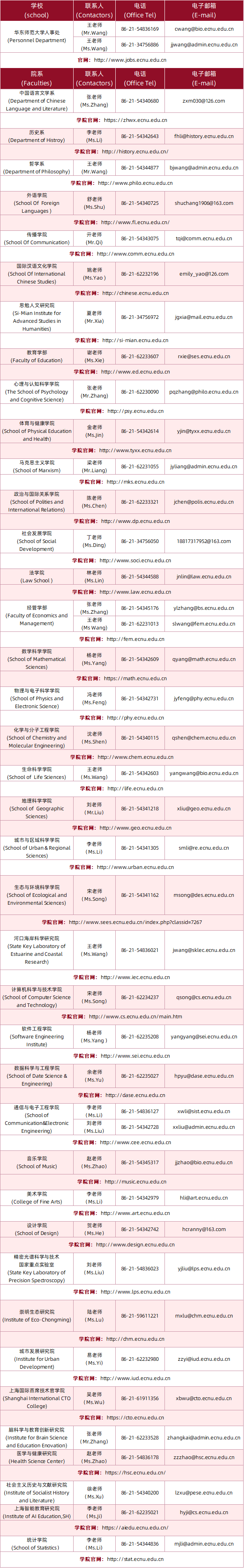 附:各院系联系方式