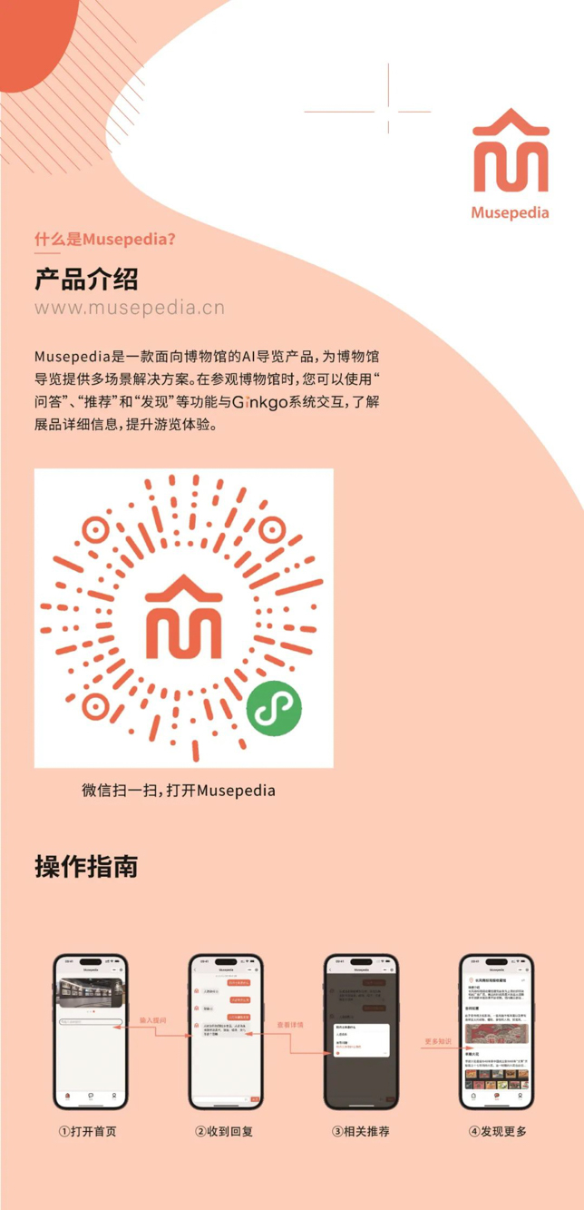 Musepedia小程序的用户对象是博物馆游客,用“问答”“推荐”和“发现”功能提升游览体验。除此之外,Musepedia也可以为博物馆提供数据分析的技术支持,帮助博物馆快速了解当前展馆内的热门展品和热点问题。博物馆教育致力于将博物馆馆藏资源转化为优质的教育资源,但在转化过程中往往存在效率低、成本高等问题。