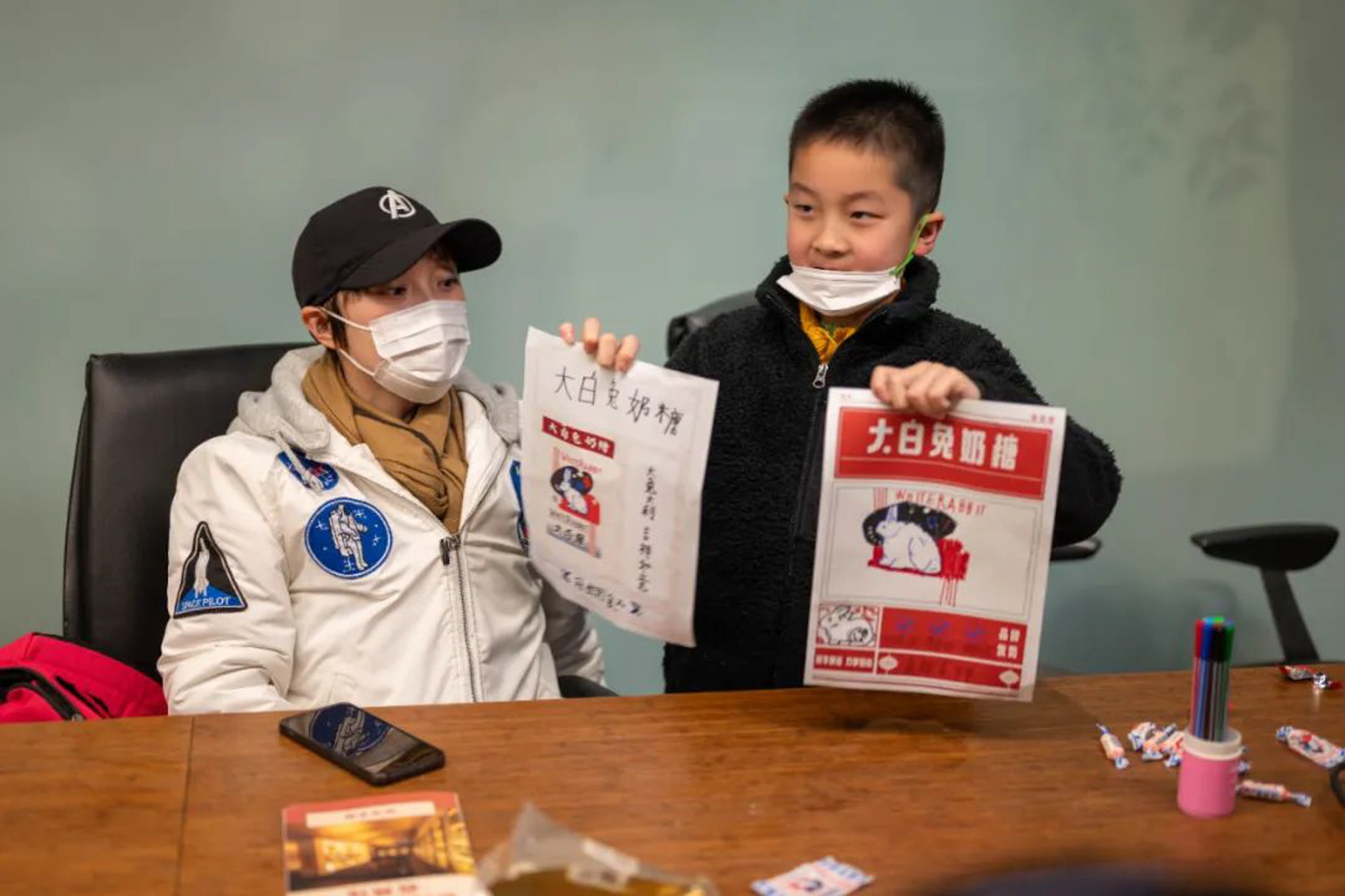 当日,在完成研学手册的游戏任务之后,小朋友们还积极参与到课堂互动中,充分发挥创造力和想象力,完成了“大白兔奶糖”宣传海报的设计制作。