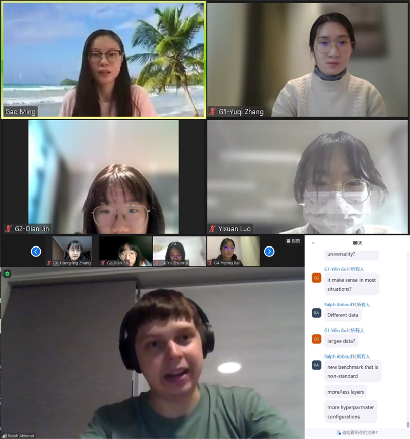 除了硬核知识的讲解,教授们还运用课堂游戏提高学生的学习兴趣,检验学习成效,并对教学节奏进行动态调整。针对学习过程中的难点,教师答疑与助教辅导帮助同学们开展有条理的学习与研究,作为助教的博士生学长学姐,每周组织讨论。专业的教学以及辅导团队以互动的方式,介绍了如何分析论文、搜集文献资料、部署论文,分享了科研经验并对研究过程进行指导。在此基础上,同学们开展头脑风暴,不同的专业知识、科研方法碰撞交融,助力思维火花的绽放。