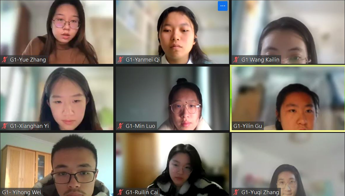 项目开始前,两校将不同专业、年级、英语水平的学生穿插分组,由各组自主学习与管理,开展分组讨论及学习,进行课堂展示及小组作业提交。面对不确定性、挑战性的任务,同学们逐渐适应,集思广益,提高了小组合作的主动性,每个人充分发挥能力和特长,不仅拓展了学术视野,还在小组协作分工中强化了团队合作精神。不同专业背景的同学从不同的角度,提出针对性的见解,突破了单一专业的局限性,交叉学科的合作成为该项目的一大特色。