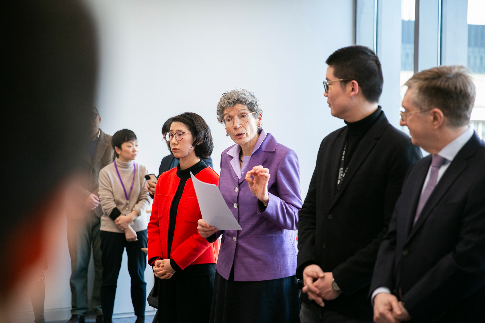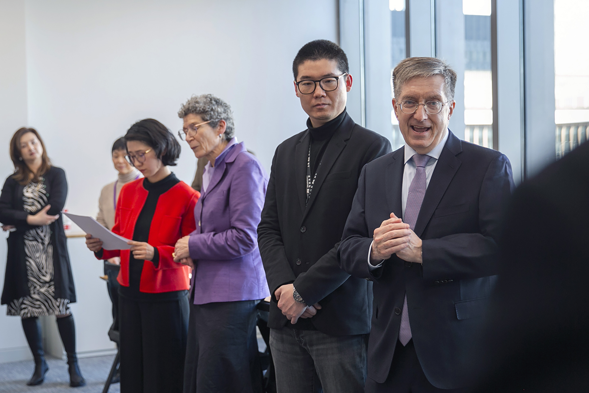 上海纽约大学校长童世骏,常务副校长雷蒙、教务长衞周安分别致辞,对完美(中国)官方赠予的这份珍贵礼物表示诚挚的感谢。油画将会展示在上海纽约大学新校区最显著的位置。
