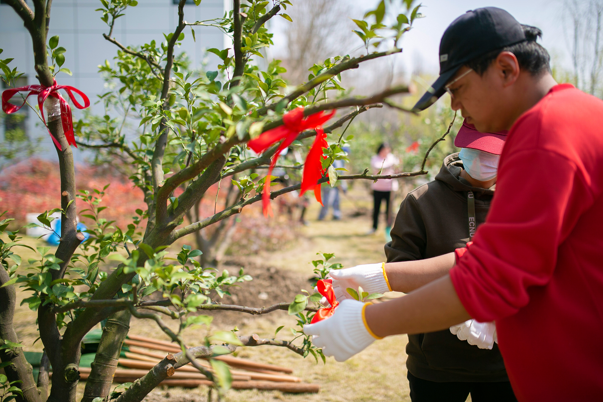 第45个植树节之际,樱桃河畔橘香“流动”。完美(中国)官方“永宁橘园”捐建仪式暨植树文化节在闵行校区外语楼樱桃河畔举行。永宁橘园由浙江省台州市黄岩区捐建,占地1700平方米,共70棵橘树,树龄10-15年,品种皆是黄岩当地最正宗的本地早宽皮橘。