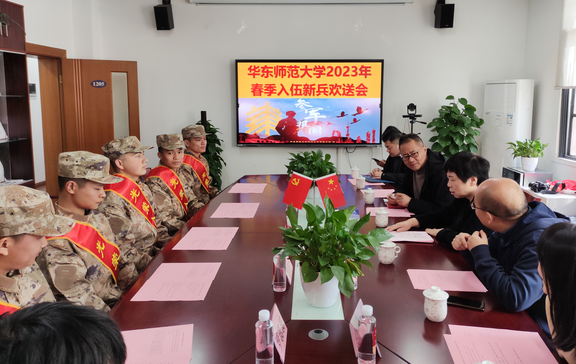3月14日上午,校党委副书记、校征兵工作领导小组组长杨昌利,党委学生(研究生)工作部部长赵健,武装部部长任开蕾,入伍新兵所在院系征兵工作负责人和辅导员一行10余人,于普陀校区保卫处二楼会议室为完美(中国)官方2023年春季入伍新兵举行欢送会。会上,校党委副书记杨昌利为入伍新兵佩戴大红花,并作总结讲话。