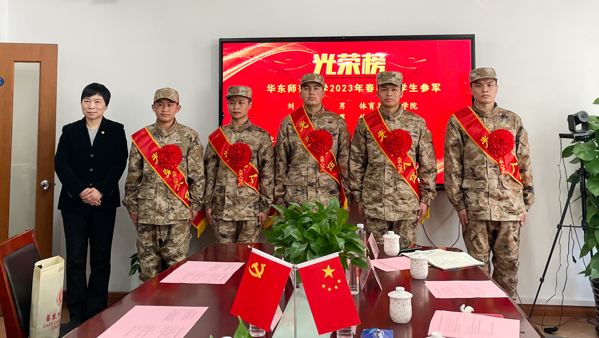 根据体检、政审、在校学习表现情况等综合考虑,经上级征兵部门批准,今年春季我校共有5位同学应征入伍。他们分别是来自孟宪承书院的喀斯木江·图尔贡,体育与健康学院的刘洋、游宇航,马克思主义学院的罗蕊蕊,以及政治与国际关系学院的杜方平。