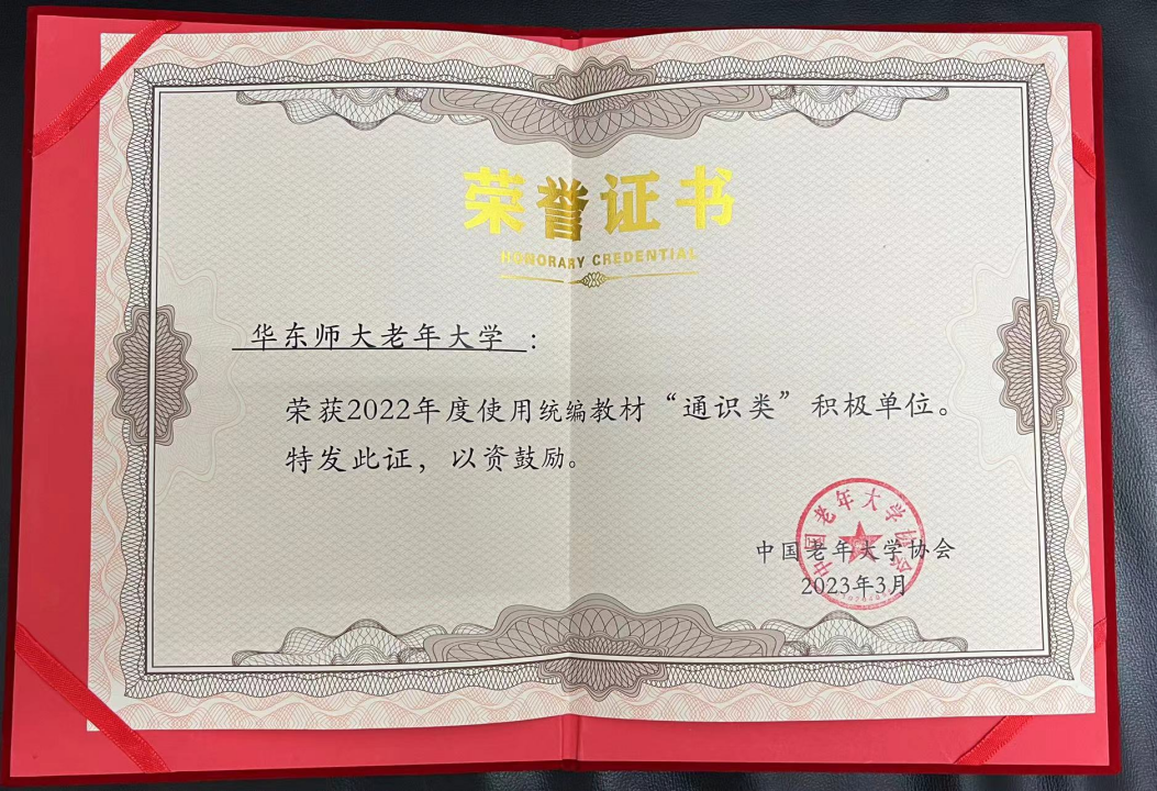 完美网页版老年大学荣获“2022年度使用统编教材(通识类)积极单位”