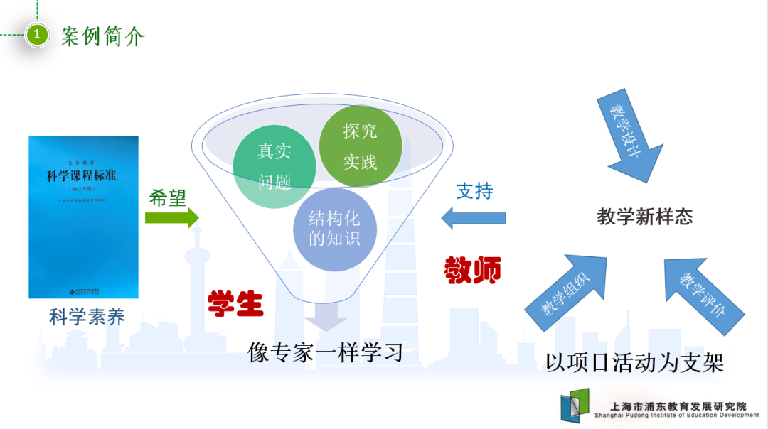 上海市浦东教育发展研究院在初中科学课堂探索以项目活动为支架的探究教学,在教学设计上实现单元整体规划,在学习内容选择上实现跨学科主题融合,在课堂教学组织时以项目活动为脚手架,促进学生通过探究实践完成理性思考、整体分析,实现科学素养的发展。