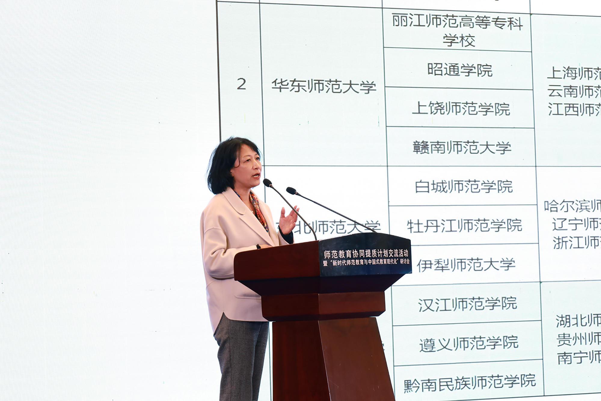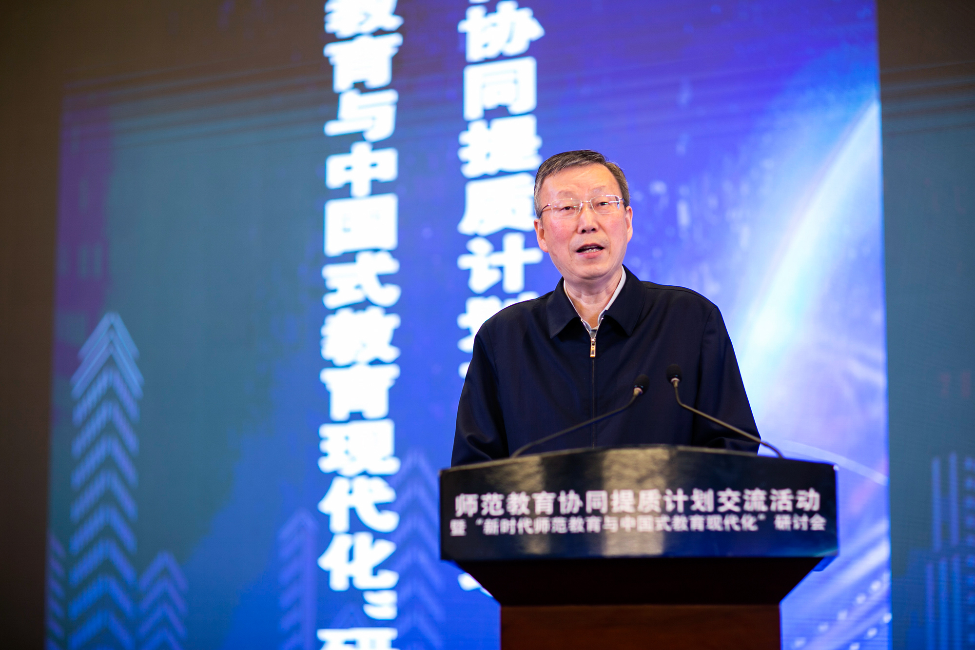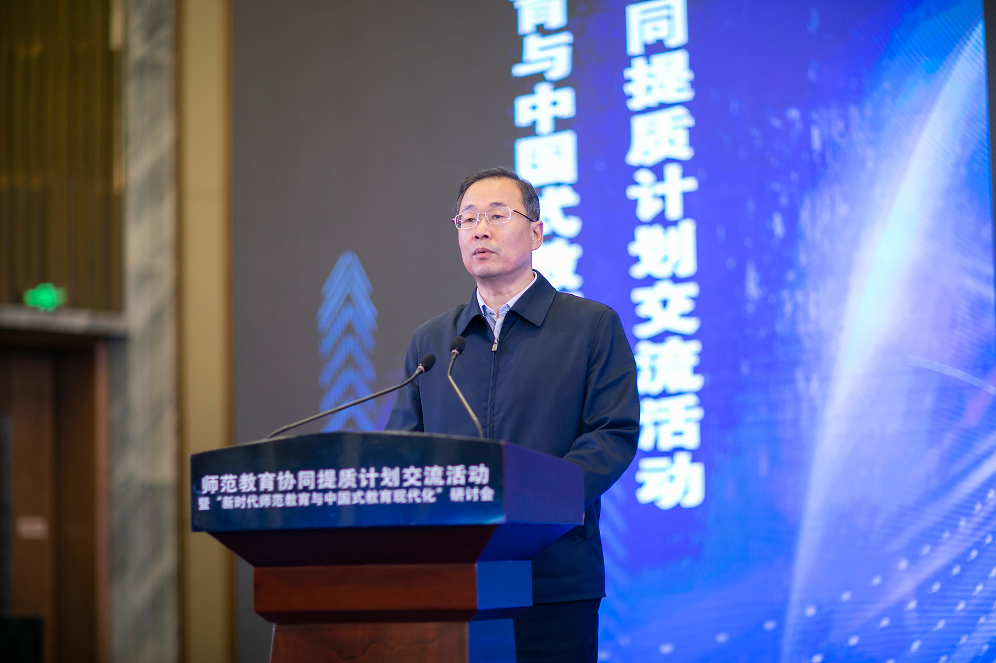 王嘉毅指出,党的二十大对建设教育强国、科技强国、人才强国做出了全面部署,对培养高素质教师队伍提出了更高要求。他强调,2023年是全面贯彻党的二十大精神的开局之年,是实施“十四五”规划、确保党的决策部署在教育系统全面落实的关键一年,大家要团结一致、凝心聚力,深入推进实施协同提质计划,加大教师教育改革力度。要落实教师培养第一职责,对标党中央对人才培养的要求、对接基础教育改革发展对教师的需求,落实立德树人,强化五育并举,融合职前职后、促进教育教学数字化转型,完善协同提质计划工作机制,推进教师教育改革创新,引领各师范院校教师教育学科专业的内涵建设和协同发展,探索教师教育改革发展的中国方案。以高质量开放、高水平合作的大格局不断增强教师教育改革的系统性、整体性、协同性,有力回答“强国建设,教师教育何为”这一时代课题,为建设教育强国,实现中华民族伟大复兴做出新的更大贡献。