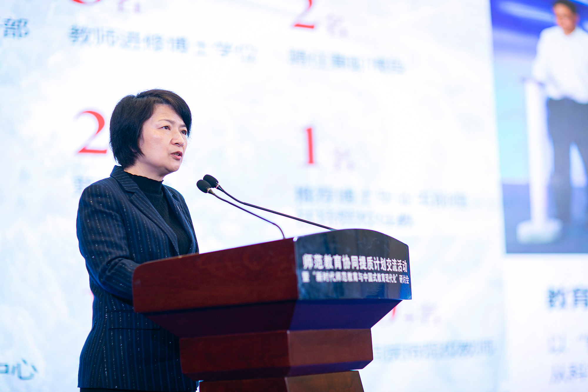 任友群在题为“推进实施协同提质计划,完善中国特色教师教育体系”的专题报告中谈到,党的十八大以来,国家持续加强教师教育体系建设,印发“强师计划”“优师计划”等重要文件,强化师范院校在教师培养中的主体地位和关键作用,人才培养模式、质量保障体系和师范生支持力度不断加大和完善,教师教育迎来前所未有的发展机遇。同时他也指出,我国师范教育高质量发展还存在主动适应基础教育改革能力不足、师范大学办学定位偏移、地方师范院校发展薄弱、办学经费不足等一些瓶颈问题,亟须进一步理清矛盾、深化改革。他提出要着力实施“高质量教师队伍建设战略工程”,研制加强教师教育体系建设文件,提出改革举措,完善公费师范生教育体系,通过推进实施师范教育协同提质计划,加强师范院校专业建设,推动师范院校服务基础教育能力建设,打造中国特色高水平教师教育体系。