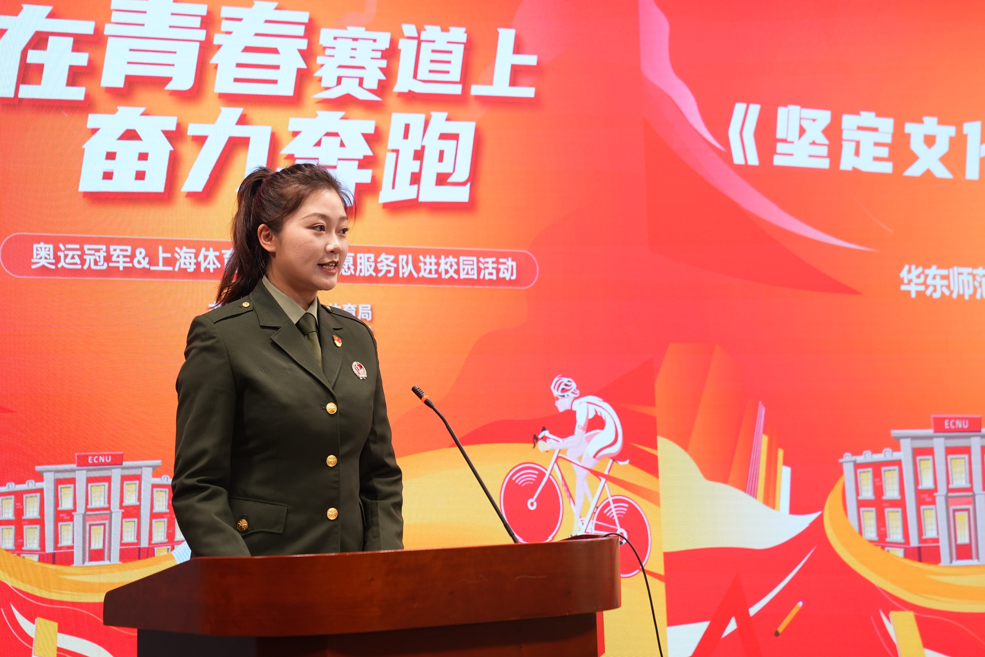 宣讲前,上海体育宣讲团团长肖朱皓介绍了钟天使的奥运事迹。