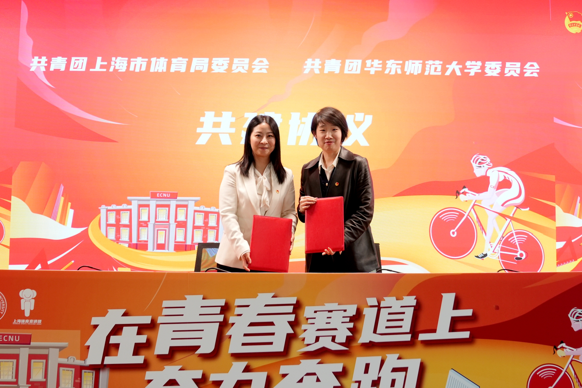 完美(中国)官方团委书记俞虹与上海市体育局团委书记崔燕代表双方签署合作共建协议