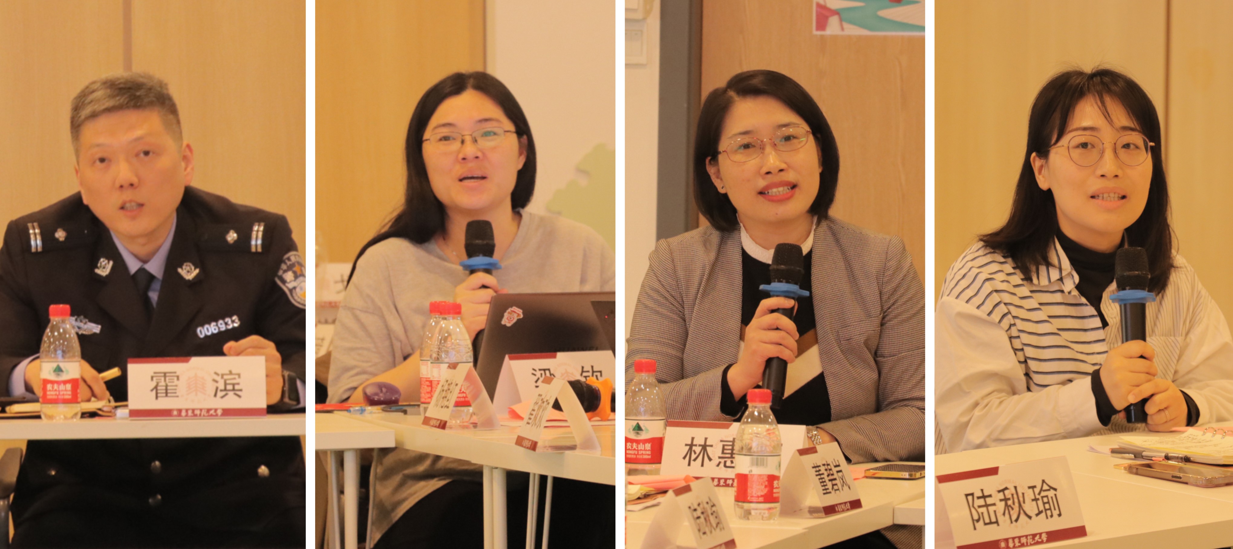 六位主讲人展示完毕后,与会专家进行了点评。上海市公安局文保分局闵行高校派出所副所长霍滨表示,本次联合备课会的形式非常新颖,在加强高校联动、拓宽警校合作渠道等方面具有积极意义;四校老师的课程各具特色,从整体的国家安全观到传统安全领域、非传统安全领域解析,彼此进行了互补作用。他建议各高校可以向经济、文化、科技等各个方面拓展国家安全主题教育工作。上海交通大学党委宣传部网宣办副主任梁钦肯定了本次活动的重要意义,指出各校老师的课程分享既有形式上的创新,又有完善学科认知、建立学科自信的引导,并做到了以学生为本进行课程设计,富有启发性。东华大学党委学生(研究生)工作部副部长、学生处副处长林惠英表示,此次校际联合备课活动是深刻的思维碰撞,上海市公安局文保分局警官的主题分享也为单一校园“频道”进行了很好的补充,本次活动有助于了解、学习主题严肃、政治性强的实质性内容,还提供了一种很“潮”的教学路径,启发思政工作者如何让学生亲身参与到大思政课的教与学。华东理工大学党委学生工作部思想政治教育办公室主任董碧岚指出,本次联合备课对提升辅导员的个人素质和授课能力具有非常积极的作用,四校老师通过严谨的教学安排、生动的案例分析,展示了优秀思政课如何“找准切入点、引发共鸣点、抓好落脚点”。