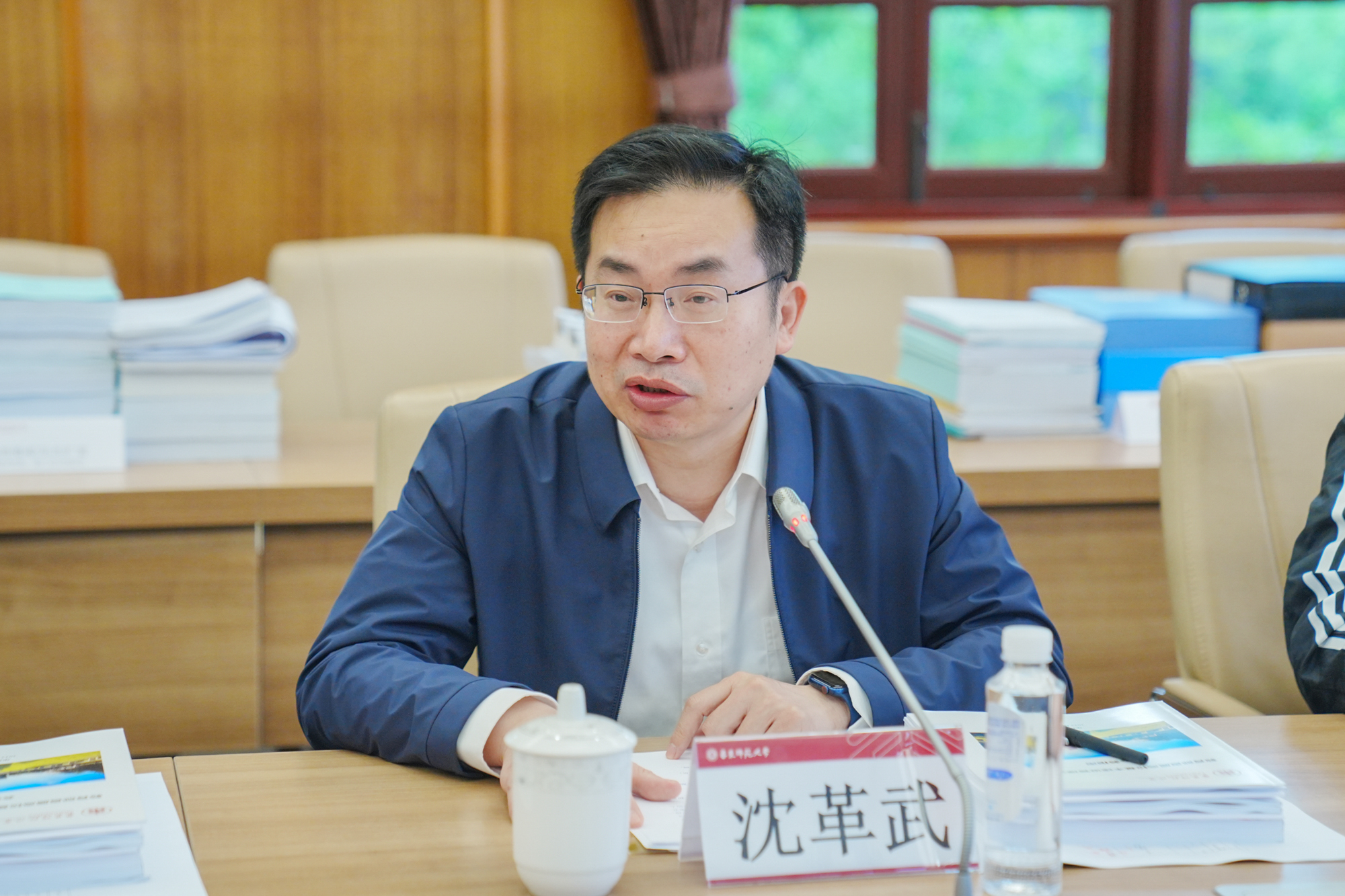 调研组副组长、武汉理工大学副校长沈革武主持座谈会