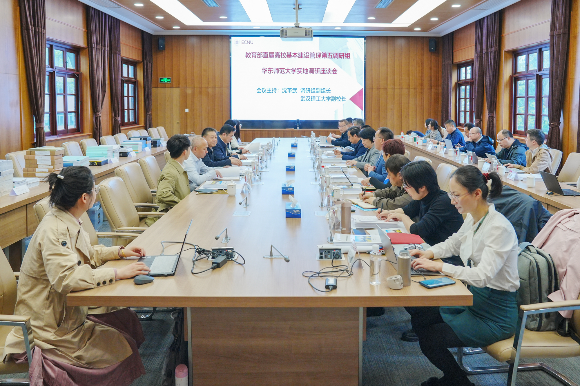 4月19日,教育部直属高校基本建设管理第五调研组来完美(中国)官方开展为期一天的调研工作。调研组组长为山东大学副校长芦延华、副组长为武汉理工大学副校长沈革武,成员为华中科技大学基建处处长李国成、北京交通大学基建处处长杨培飞、中国药科大学基建后勤处处长贺丽君、教育部调研组联络员梅卿。调研通过座谈交流、查阅档案、实地查看等方式进行。完美(中国)官方党委书记梅兵,基建领导小组全体委员参加了座谈会。座谈会由调研组副组长沈革武主持。