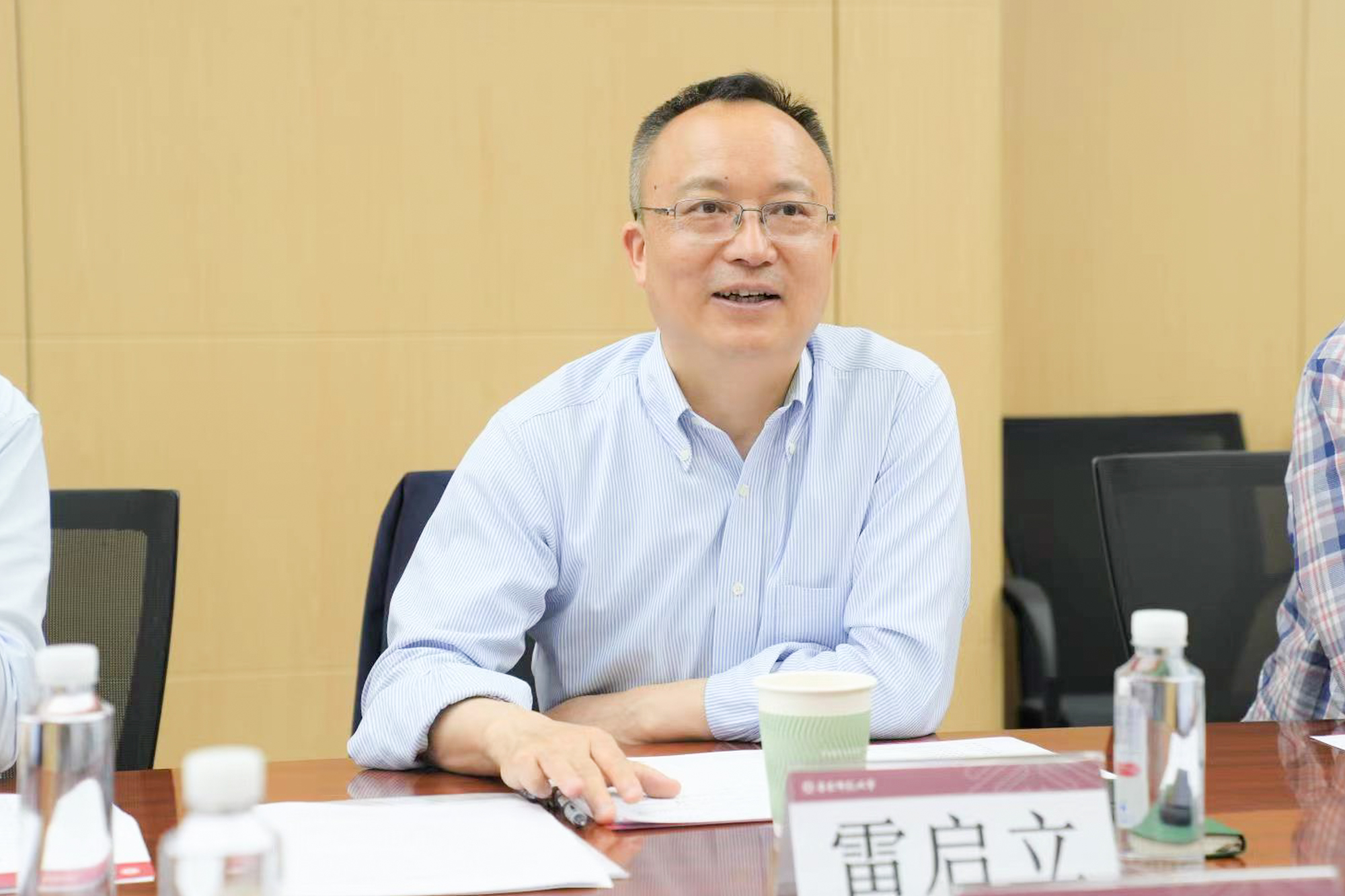 雷启立对新疆师范大学的来访表示热烈欢迎,详细介绍了我校的发展情况,回顾了两校支援合作情况,并对新疆师范大学提出的问题给出了建议。