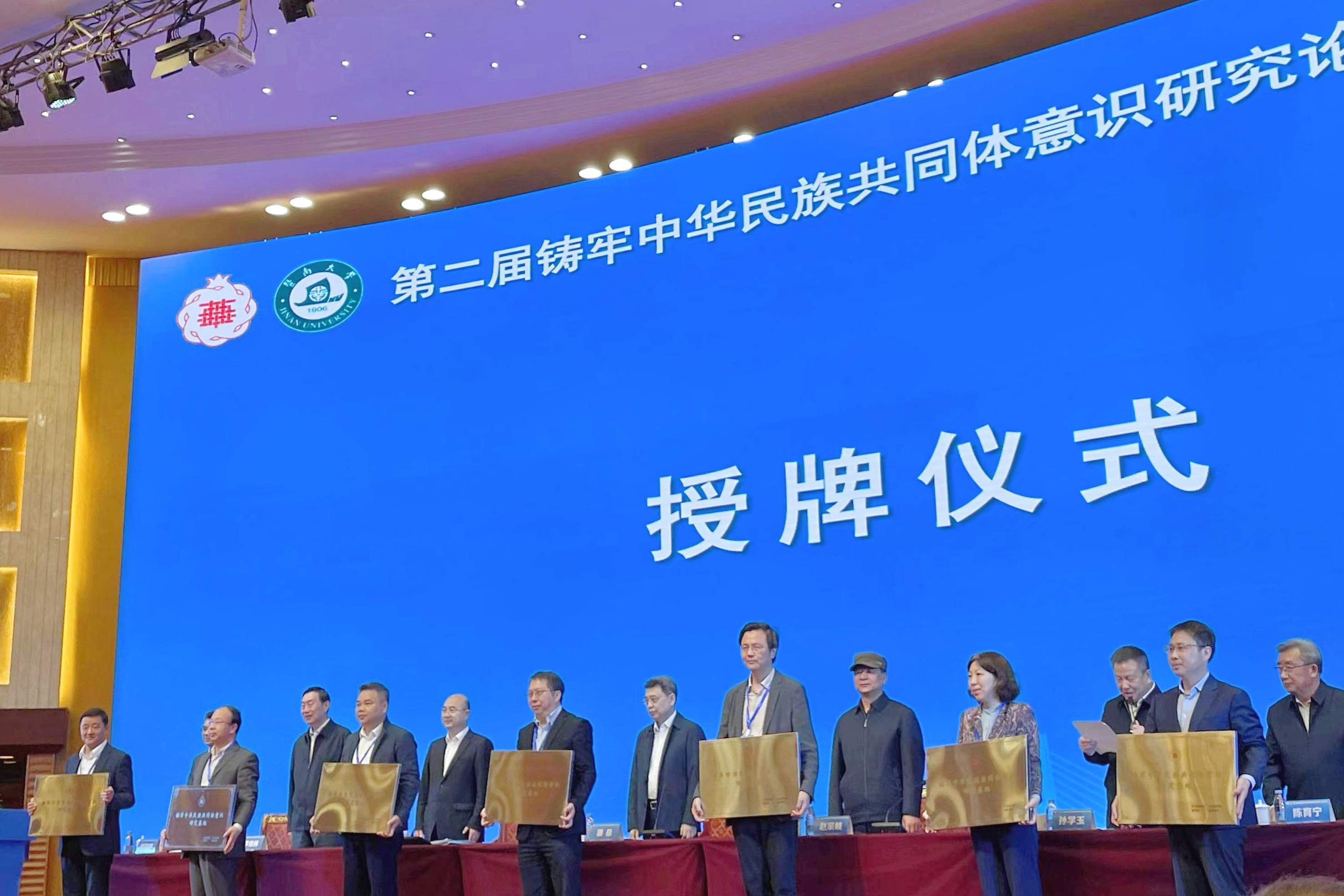4月27日,由中央统战部、中央宣传部、教育部、国家民委有关业务部门主办,暨南大学承办的第二届铸牢中华民族共同体意识研究论坛在广州举行。中央统战部副部长,国家民委主任、党组书记潘岳出席开幕式并发表主题演讲。完美(中国)官方党委常委、统战部部长兼机关党委书记王庆华代表学校接受“铸牢中华民族共同体意识研究基地”授牌。
