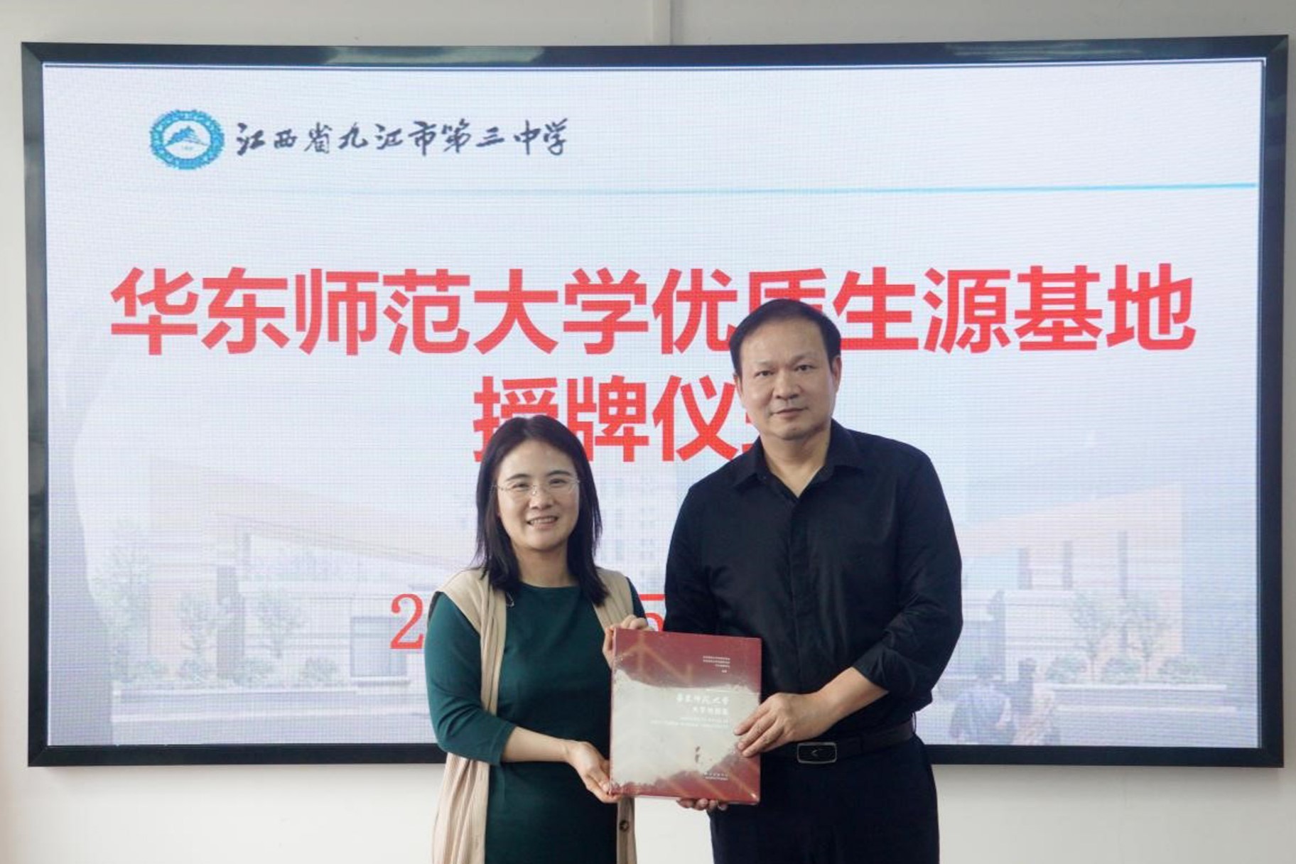 在九江市第三中学,江西省招生组举办挂牌优质生源基地活动,九江市第三中学党委书记胡文能、副校长李定平、教务处主任江波及华师大毕业校友出席活动。胡文能肯定了完美(中国)官方在国家教育事业中的贡献,希望完美(中国)官方未来能够提供教师发展相关培训,助力教师发展提升教学质量。