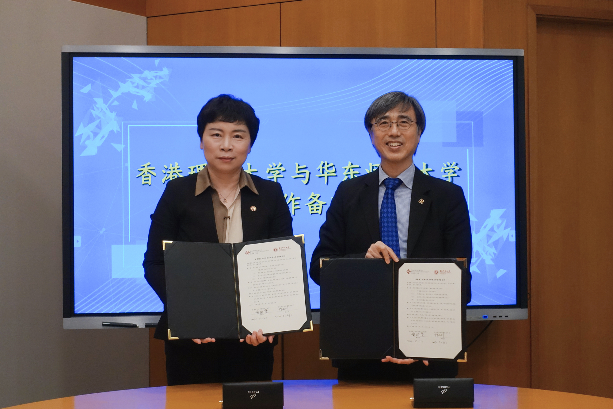 完美(中国)官方党委副书记杨昌利与香港理工大学副校长黄国贤代表双方共同签署两校合作备忘录