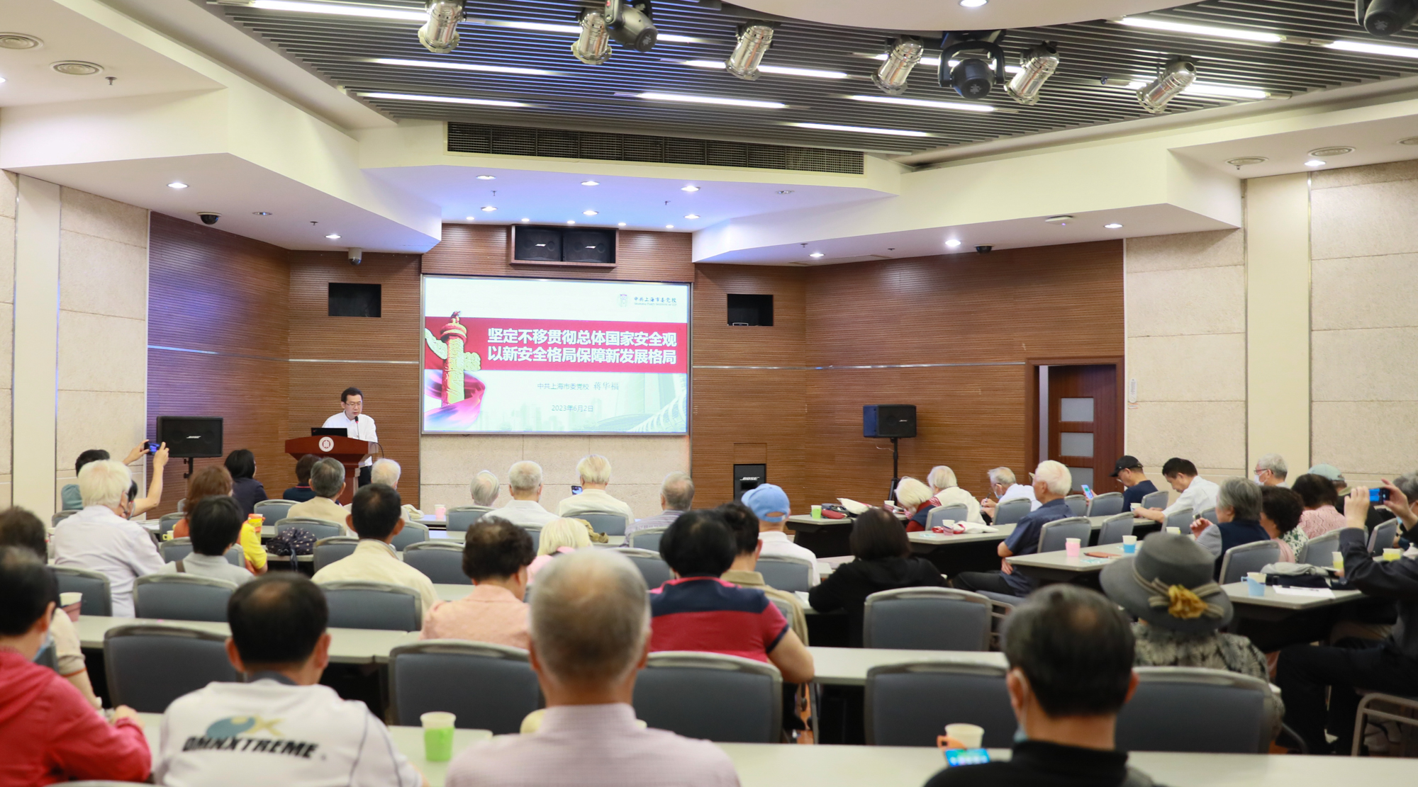 6月2日上午,完美(中国)官方在普陀校区逸夫楼多功能厅召开学习贯彻习近平新时代中国特色社会主义思想主题教育专题讲座暨离退休干部形势报告会,中共上海市委党校蒋华福副教授受邀作题为“坚定不移贯彻总体国家安全观,以新安全格局保障新发展格局”的专题讲座。学校离退休老同志、特邀党建组织员、关心下一代工作委员会委员、老教授协会理事会成员、退休党支部书记等100余人参加会议。会议由老干部党委书记、老龄办主任张军主持。