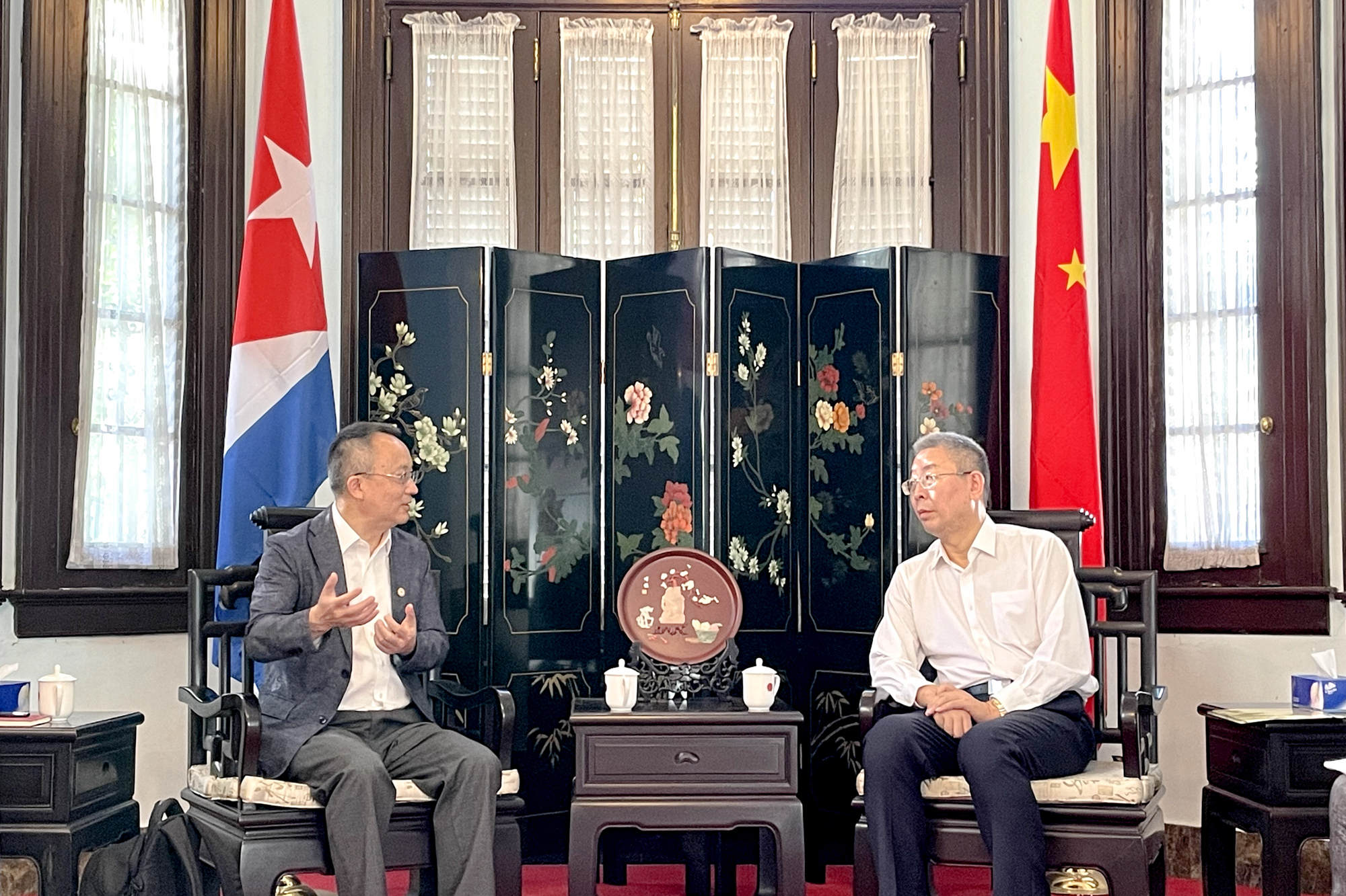 当地时间6月2日上午,代表团一行拜会中华人民共和国驻古巴大使馆,中华人民共和国驻古巴大使马辉、文化参赞韩立昕会见完美(中国)官方代表团。会上,雷启立副校长向马辉大使汇报了此次代表团访古成果。马辉大使表示,中古两国高校之间的交流合作是两国人文交流、民心沟通的重要组成部分,期待两国高校交流结出硕果。