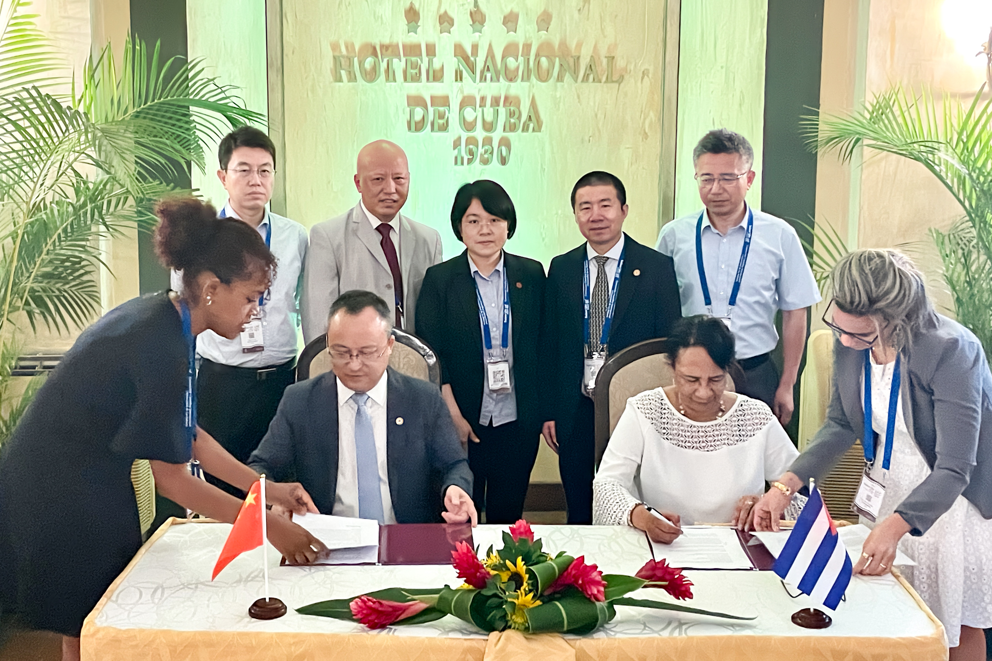 校长论坛结束后,副校长雷启立与哈瓦那大学校长Miriam Nicaea Garcia签署了两校合作研究备忘录。