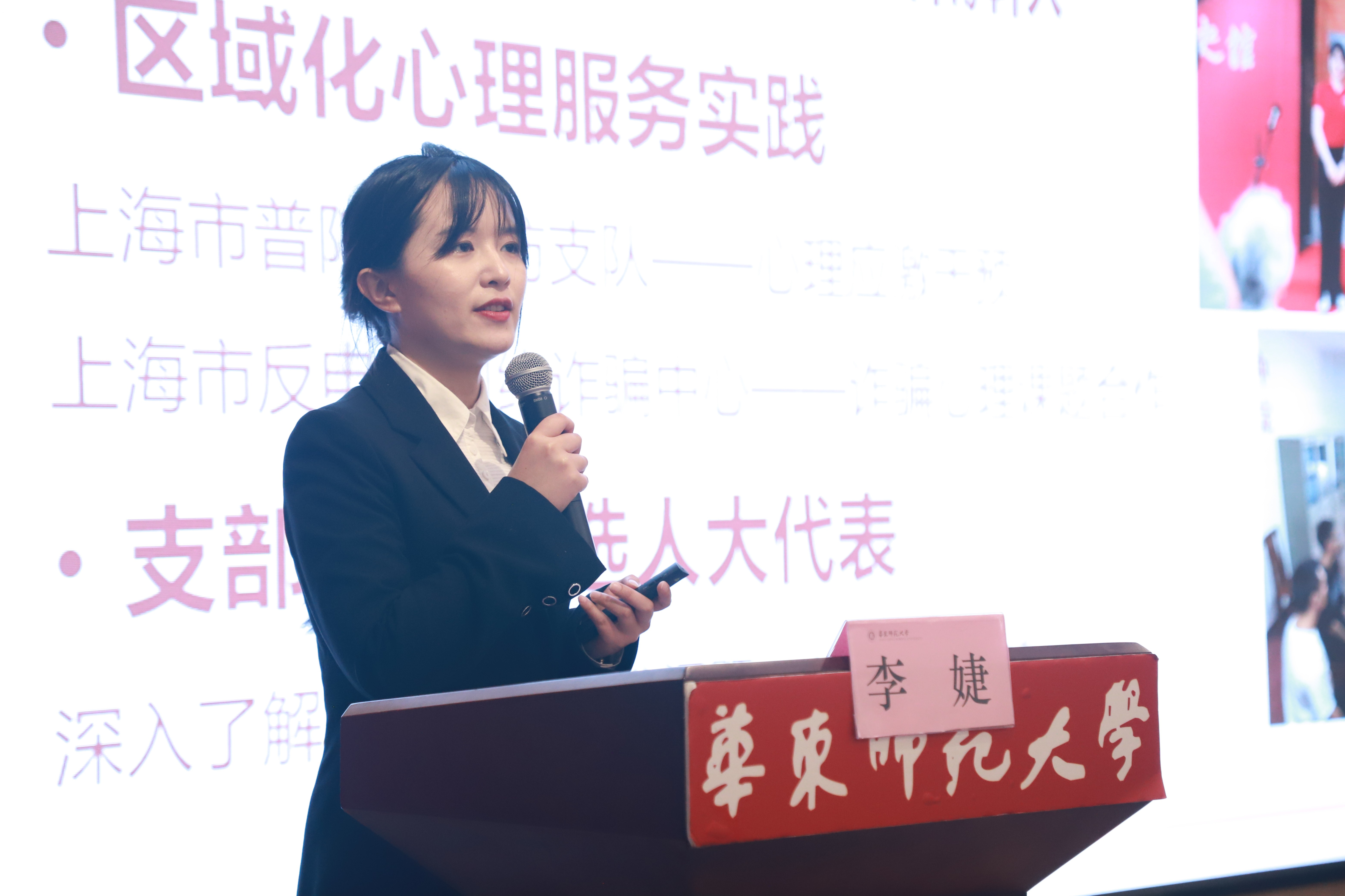 全国高校“百个研究生样板党支部”心理与认知科学学院学术型硕士研究生第一党支部书记、2023届选调生代表李婕进行《砥砺报国 到祖国和人民最需要的地方去》主题报告,从立心和立行两个方面介绍了支部建设情况。党支部同学们在党史学习、红色场馆建设、心理援助、心理科普和实践等项目中,以“党建引领-专业支持-志愿实践”机制开展社会服务,彰显了党员的青春风采。