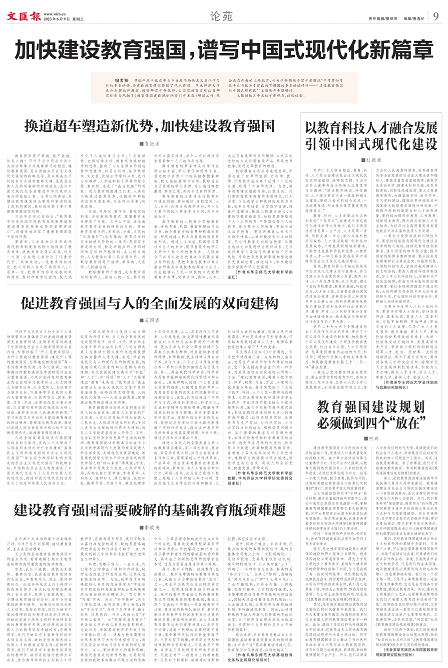 经过一段时间的研究讨论,我们认为,教育强国建设规划必须从如下四方面来谋划重点: