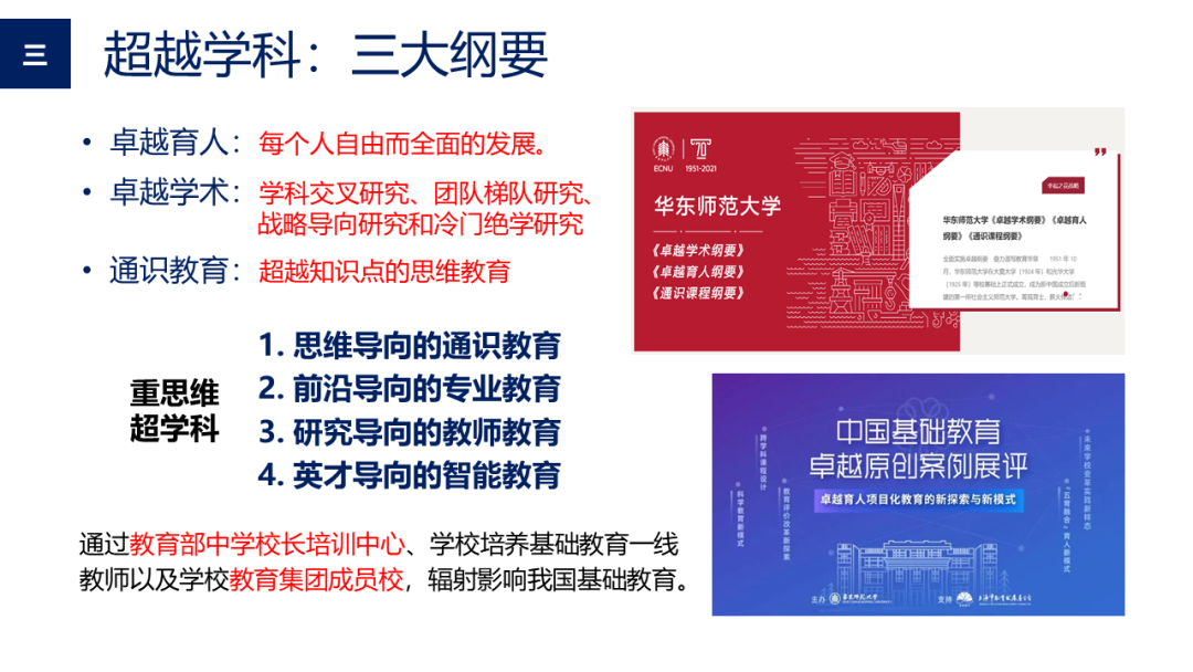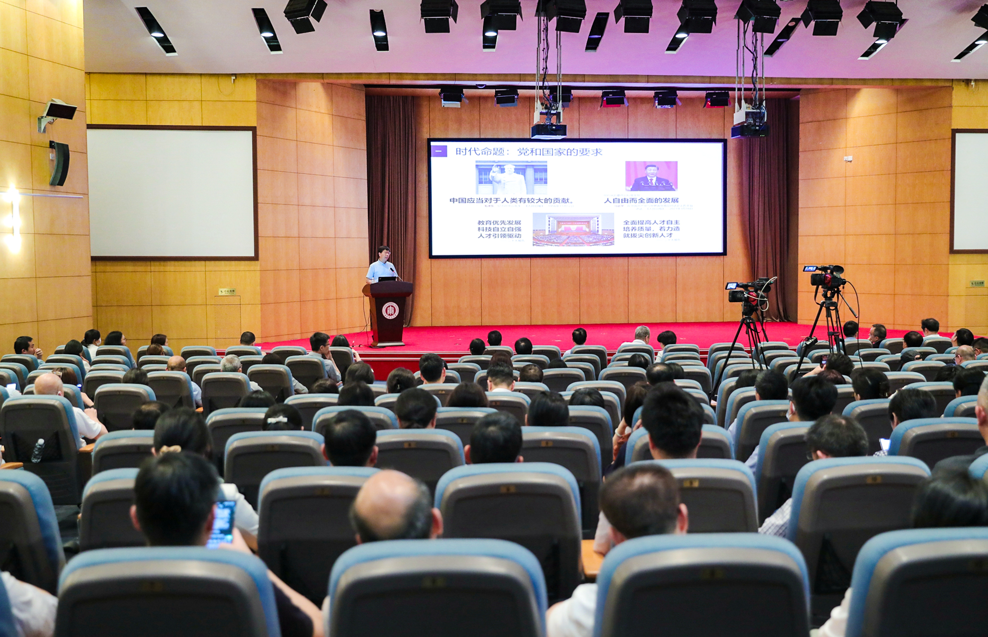 “教育事业需要坚持马克思提出的、习近平总书记强调的‘每个人自由而全面的发展’作为第一原理,树立并运用‘超限’理念,勇于超越局限、界限和极限,超越离散知识点、单一思维模式、单一思维体系,用‘最大的原则性+最大的灵活性’培养拔尖创新人才和推动科研创新。”