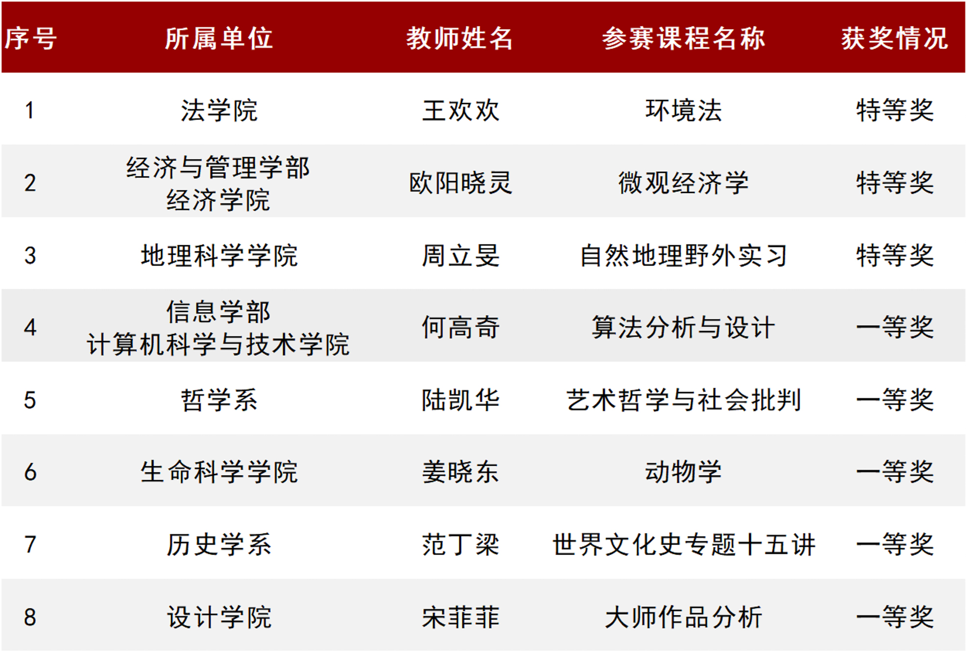 这次比赛,一等奖获得者、完美网页版生命科学学院姜晓东教授就是学校“青年教师育人贡献奖”获得者,获奖课程《动物学》也入选国家首批一流本科课程。一等奖获得者、计算机科学与技术学院何高奇教授曾两次获得上海市教学成果奖。
